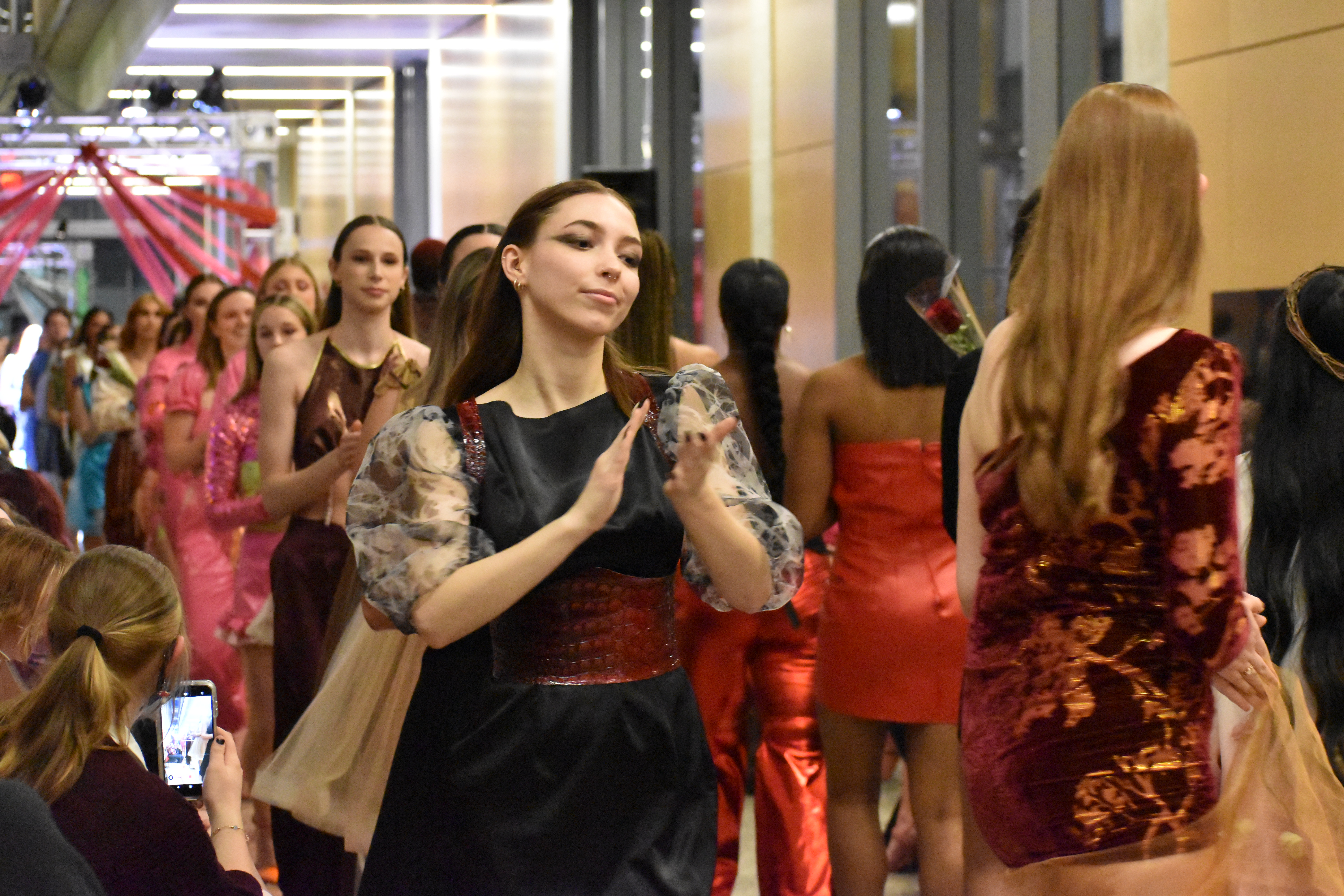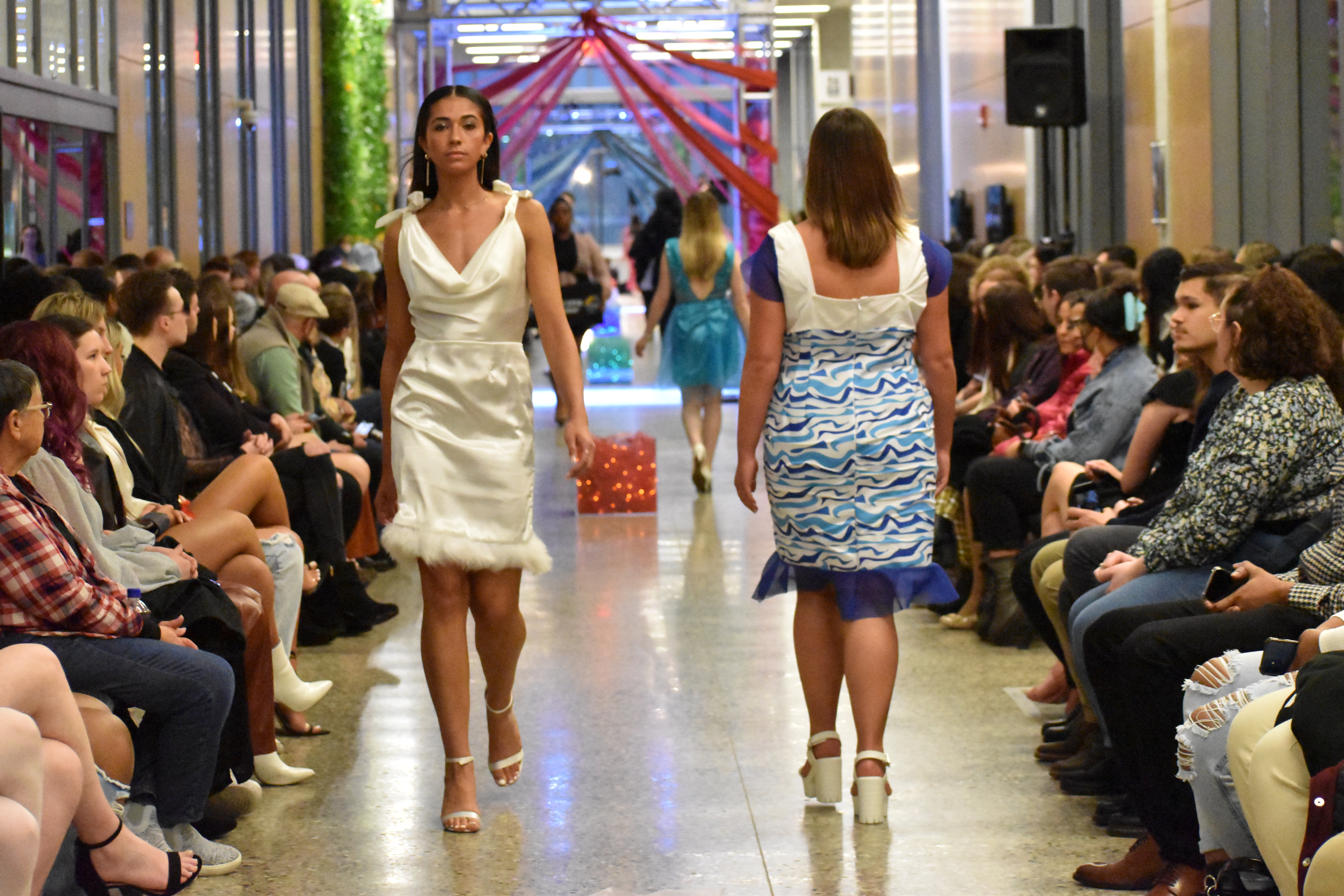 April 6, 2022 Style & Beauty 2022 Threads Fashion Show presents: The Elements Story and photos by Maddie Lajewski Central Michigan University’s annual Threads Fashion Show was born from the collaborations between fashion designers, fashion merchandisers, visual merchandisers and interior design students. They all dedicate months of hard work and time to creating Threads Fashion Show; this year’s theme was ‘The Elements.’ When selecting the theme for this year, all three producers had similar ideas. “We all had the same idea, but never really talked about it,” producer Kate Castillenti said. “We had a gala event in November, then we have a production class that’s in the spring. So this has been going on since January.” Morgan Boosamra is a junior fashion design student and this was her first year participating in Threads. “I’ve always wanted to be a fashion designer, the kind that has fashion shows so this was my first opportunity to be in one and to get practice with it,” Boosamra said. “It’s also something to push me to make garments and to continue being creative. It’s a building experience.” Her collection was called My Universe and was a part of the element Earth. “When I heard of the elements, I figured people would be doing similar takes on it, so I tried to encapsulate everything in the Earth and in the universe, and kind of have a different perspective on it and incorporate a lot more colors into it,” Boosamra said. On top of the 21 designers sharing their creations in the show, committee heads and producers had to keep track of 120 models. This was producer Rachel Zauel’s responsibility, which can be very overwhelming, she said. “Being in charge of the model committee, means I have to oversee 120 models, six people on the committee and trying to balance that with everything else that I have to do,” Zauel said. “Communication is really hard with that many people, but it’s definitely the most important thing.” Designer and CMU senior Kylen Christie’s collection Products of Pollution displayed the evolution of pollution on Earth. “My collection was inspired by pollution, capitalism and consumerism,” Christie said. “It kind of shows the aftermath of that. I kind of wanted it to tell a story, the beginning like nothing is affected then it goes further into pollution.” Another designer for the element air had previous experience with fashion shows before coming to Central Michigan. “I’m just a design minor,” Lauren Bark said. “We had fashion shows at my high school (Utica Academy of International Studies) so I got really into making clothes because it’s just fun for me.” Bark focused on contrast to add emphasis for her collection. “The name of my collection is Calm Before the Storm,” Bark said. “I actually was inspired by the element air, so I wanted to pull together the strength and the softness of air, so that’s why there’s a lot of metal detail, as well as pearls. It’s finding the balance between the two.” Some students played multiple roles throughout the creation of the show, like designer and public relations committee member Carmella Contesti. “It’s an amazing experience not only working behind the scenes but also as a designer and it’s a great way to show off our program,” Contesti said. While many of the designers were inspired by one of the elements included in the show, some of them were inspired by other people and those close to them. “[The inspiration] came from my grandma,” Contesti said. “She inspired me to sew because my major’s merchandising, but I design as well. She inspired me to actually design, but the collection itself is inspired by the element air.” The Central Michigan fashion department is close partners with Carhartt, who watched the show via live-stream, as well as other virtual viewers. “This is going to be the first or second time they’ve done the live stream, which is really exciting,” model Hunter Burns said. “FAMD (Fashion Association of Merchandising and Design) is the sister organization to Threads so we always try to support each other and spread awareness about both organizations, and how people could get involved. Threads is a really cool opportunity for designers, students, interior design students with courses that work in tandem with us to do the design of the fixtures and lighting. It’s really cool to see this all come together and all of the people who are involved, the joint effort that goes into something to show off our program and to show off our designers.” Designers agreed upon gelled hair and simple makeup looks prior to the show since there are so many models and a lack of experience from students doing the hair and makeup. Kaitlyn Denzler is a licensed cosmetologist who helped prepare the models backstage. “They wanted a lot of looks that were easy, capable, that people who don’t necessarily have a lot of experience doing makeup on others can do,” Denzler said. It was a sold-out show, packed with faculty, family, and friends. “I thought it was wonderful,” attendee Rwanda Jenkins said. “I thought it was a great time for students to show off their creativity and to show how differently everybody can think, but to pull it all together and to show all of the elements.”