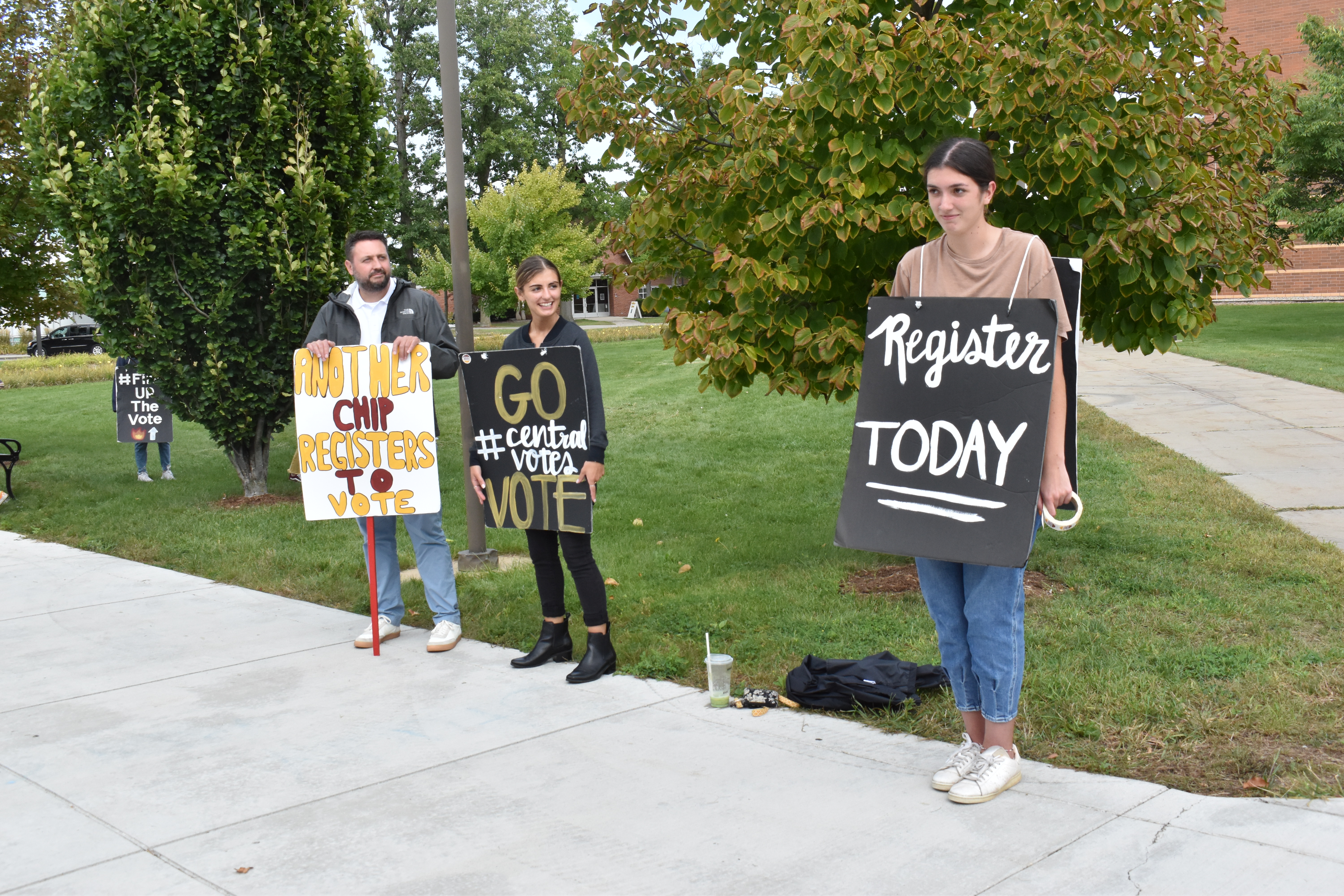 September 21, 2022 Events, Student Lifestyle Central Votes helps students register to vote Story and photos by Maddie Lajewski With the midterm elections quickly approaching this November, Central Votes was on the lawn of Park Library on Tuesday, Sept. 20 helping CMU students register to vote and apply for absentee ballots. “Central Votes is a registered student organization here on campus that’s really dedicated to improving civic engagement and getting more CMU students to vote,” said President Katie Ellison. “We meet every Tuesday from 8-9 p.m. in Anspach 256. We’re really just dedicated to making sure we fire up the vote.” Ellison is a senior yet only recently joined Central Votes last year. “I’ve actually only been involved with Central Votes since my junior year,” Ellison said. “I’m a senior, I only started in my junior year and I feel like that’s really important. If you want to make a difference, you can start at any point. If you want to get involved in any org, it’s never too late to start. It’s never too late to be civically engaged. If you’ve never thought about politics or government or how it affects you before, it’s never too late.” Central Votes didn’t pick a random Tuesday to host this event. Fire Up the Vote is always held on or during the same week as National Voter Registration Day. “So Sep. 20 is Fire Up the Vote day,” Ellison said. “This is our National Voter Registration Day, so this is a civic holiday that is celebrated all across the country every year. I believe this is the tenth year of National Voter Registration Day. For the past couple of years we’ve been doing Fire Up the Vote day. It’s just a voter drive to get more students registered to vote. But our installed data tells us that 89% of our students were registered to vote in the last election. So we’re really focusing more on not just getting students registered to vote, but how do we make sure that they actually show up to the polls on Election Day. We’re talking about absentee ballot applications today as well.” The Fire Up the Vote event not only helped students register to vote and apply for absentee ballots, but also included a variety of different activities for students to participate in. “We have a lot of stuff at this event,” Ellison said. “We have some information and volunteers from the League of Women Voters, we have a couple different prize games, spin the wheel, play Plinko, answer questions to win candy and stickers. We have goats, that’s the most exciting part. That’s the real attractor is we have goats. We thought that would be a really great way to catch students’ eye, and get them to stop and talk to us. We’ve done a play on the ‘greatest of all time’, voting makes you the GOAT or GOATs vote. The Office of Student Activities has squirrels, so we might be Central Votes is the GOAT.” Ellison is passionate about voting and people registering to vote. “Voting is so important to me because I think it’s important for everyone to participate,” Ellison said. “I understand that maybe my vote won’t make the biggest difference, but it’s a way for me to make my voice heard. It’s a way for me to improve our democracy. If everyone else pitches in, it’s really a community building effort, and it also makes sure that our representatives are doing what we want them to do and that our democracy is working for us.” Ellison shared that students and young people hold the largest chunk of the United States population, yet they are the least likely to vote on Election Day. “That’s the whole point of voting civic engagement,” Ellison said. “The fact that students and young people are the biggest chunk of our voting age population, yet students are the smallest amount of people who actually show up to vote. So to me, it’s really important that we’re such a huge chunk of the population and yet we’re not making our voices heard because that means that something is wrong. There’s a disconnect and we’re not being represented in a way that we should be because we are the democratic experiment. We should be making our voices heard and our politicians should be working for us no matter how we’re voting, as long as you’re speaking your truth by voting.”