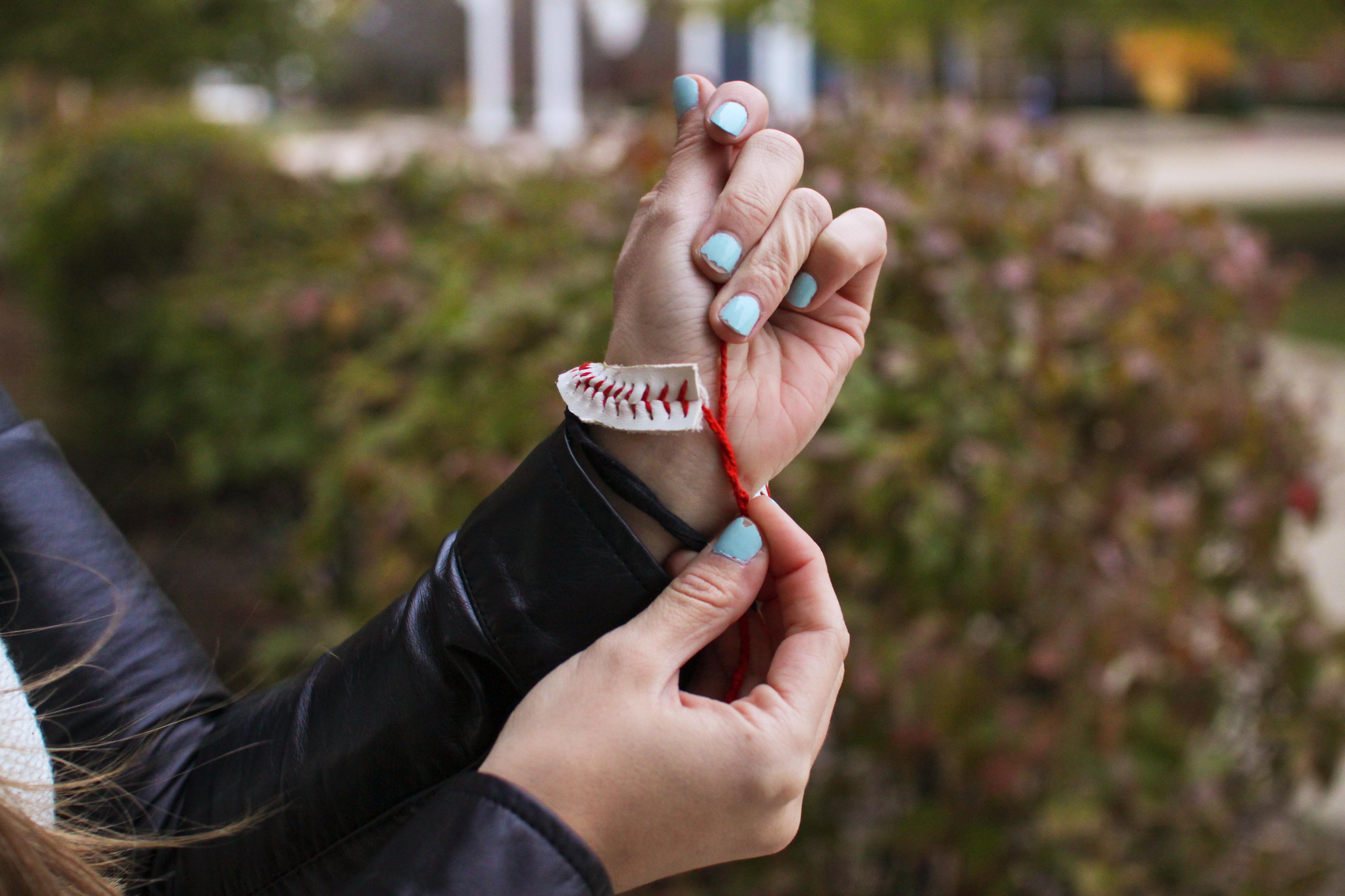 October 27, 2013 Student Styles, Style From baseballs to bracelets Postseason baseball had everyone experiencing Tiger mania. You couldn’t walk around campus without seeing someone wearing the Old English D somewhere on his or her clothing. Why not sport your love of the sport in jewelry? Take a baseball and make it into a bracelet. All you need is a baseball (one that has been used would be easier to work with), an X-ACTO knife and scissors. Take the X-ACTO knife and cut along the seams. Make sure you don’t cut too close because you don’t want the red threading to come undone! Cut all the way until you can peel the baseball apart. You will end up with the ball, the seams and two extra pieces of leather. Pull the red stitching gently so you end up with two pieces of string. You will use these to tie the bracelet on, so make sure they are long enough to do so. There should be excess leather so go ahead and cut that off (some people find it easier to use scissors for this part rather than the X-ACTO knife). The last few steps are optional. The string that will be used to tie the bracelet around your wrist can either be left how it is or you can braid it to make it look a little neater. It also might be easier to tie around your bracelet if you do this. If you have decorative beads you can also add this to the end of the string. It can be something fun, like a bead that looks like a baseball cap or a plain colored bead, perhaps your team’s colors. The next idea will take a thread and needle. Get a piece of fabric with your team’s logo on it and sew it onto the middle of the bracelet. Just make sure the logo isn’t so big that it won’t fit on the bracelet. That will be the tricky part. The Tigers may be done for the season, but that doesn’t mean you can’t still show your love of the game! With plenty of time before spring training starts, you can make bracelets for all of your baseball-loving friends. They will be excited to have new jewelry to wear next summer.
