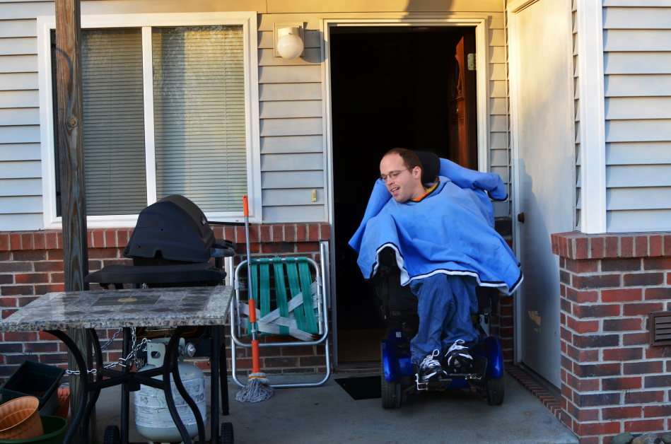 1Mount Pleasant resident Bryon Beutler, 32, drives his wheelchair out of the front door of his apartment on Tuesday, Dec. 4 and heads to his van for a trip to the grocery store. Bryon was diagnosed with cerebral palsy when he was 10 months old.