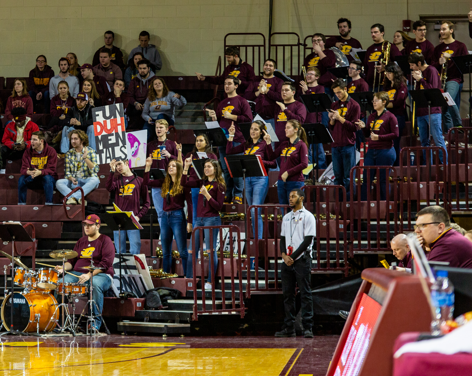 December 9, 2018 Athletics, Events, Photo Gallery, Sports, Student Lifestyle, Students Saturday Men’s Basketball: Last Game of the Semester Photos by Xavier Mendoza Students and families gathered at the McGuirk Arena to watch their favorite Men’s Basketball team face off against the Southern Utah Thunderbirds. The visitors challenged the Chippewas defensively but CMU still won 95 – 86. Their record now advances to 8-2, while still being undefeated at home, 4-0. Their next game will be at home against the UMKC Kangaroos on Dec. 19. Guard, Larry Austin Jr. (0), euro steps and breaks Southern Utah’s Forward ,Kenton Eskridge ‘s (1), ankle for a path to the hoop during their game at home on Dec. 8, 2018. Forward, Robert Montgomery (5), stays focused to transition to defense as he watches his teammate shoot a free throw during the game.Forward David DiLeo (14) shoots a three during the first half of the Chippewas’ game against the Thunderbirds.The CMU Cheer Team starts the night by stunting during the first media time out during the Chippewas’ game against the Southern Utah Thunderbirds.A student shoots a ball during a game promotion at half time during the Chippewas’ game against the Southern Utah Thunderbirds. Grand Blanc sophomore, Mackenzie Clark, smiles at the sidelines with the CMU Dance Team during the Chippewas’ game against the Southern Utah Thunderbirds.Guard, Larry Austin Jr. (0) dribbles the ball down the court during the Chippewas’ game against the Southern Utah Thunderbirds.The 6th Man Band of CMU cheers against a free throw during the Chippewas’ game against the Southern Utah Thunderbirds.A student tries her luck to win $100 for her whole row during a promotion during the Chippewas’ game against the Southern Utah Thunderbirds.Guard, Larry Austin Jr. (0) soars for a dunk during the first half of the Chippewas’ game against the Southern Utah Thunderbirds.The dance team performs during the media time out of the second half Chippewas’ game against the Southern Utah Thunderbirds.The 6th Man Band of CMU pumps up the crowd Chippewas’ game against the Southern Utah Thunderbirds.The CMU Cheer Team fires up with Central colors at the end of the half time break Chippewas’ game against the Southern Utah Thunderbirds.The 6th Man Band of CMU cheers against a free throw during the Chippewas’ game against the Southern Utah Thunderbirds.Guard Shawn Roundtree (2) and Guard Larry Austin Jr (0) stand ready during a free throw to transition to defense during the Chippewas’ game against the Southern Utah Thunderbirds.Forward Robert Montgomery (5) calms himself down to shoot a free throw during the Chippewas’ game against the Southern Utah Thunderbirds.Guard, Larry Austin Jr. (0), euro steps and breaks Southern Utah’s Forward ,Kenton Eskridge ‘s (1), ankle for a path to the hoop during their game at home on Dec. 8, 2018. Milford freshman, Gabbi Williams, smiles on court as she cheers with the CMU Dance Team as the Chippewas win the game.