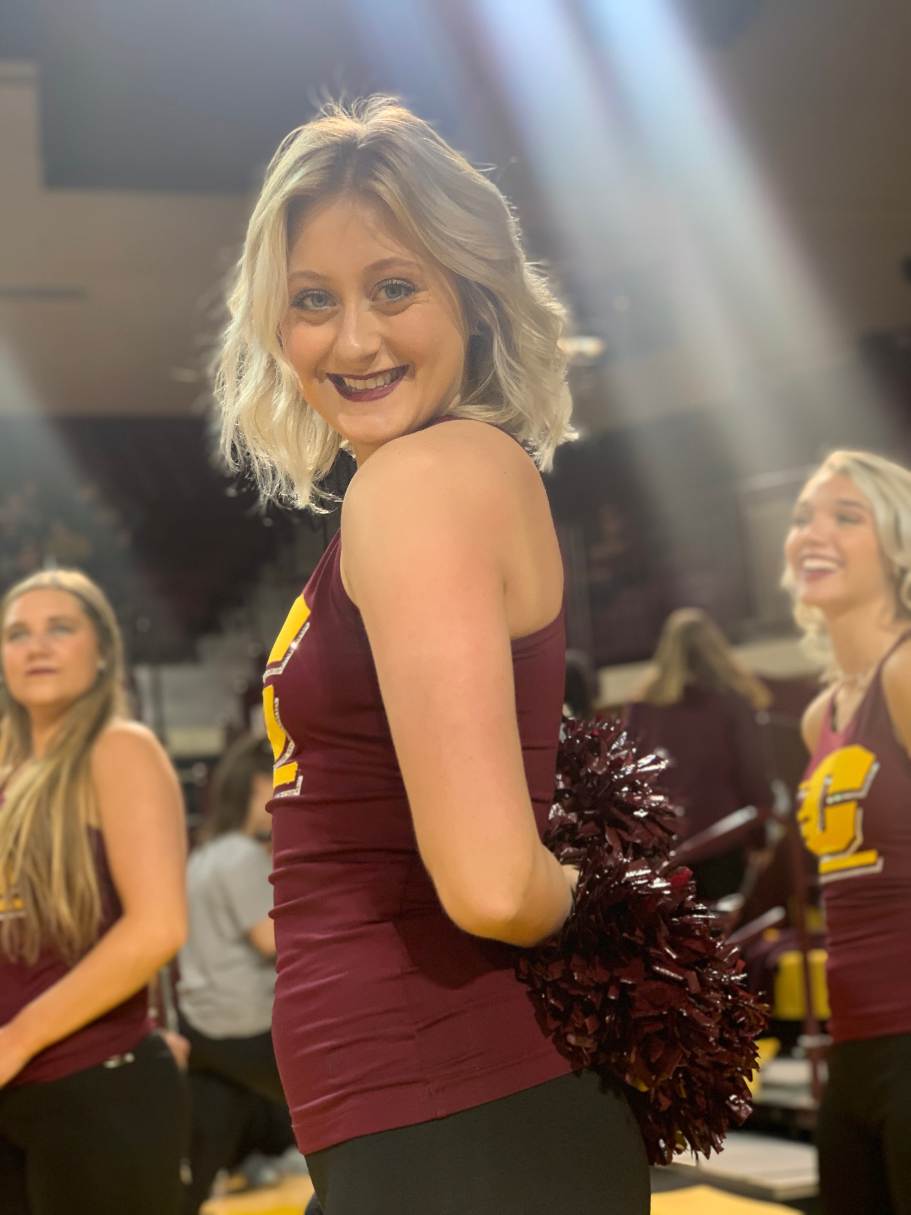 March 20, 2020 Arts & Entertainment, Arts & Entertainment A Look At Life Through The CMU Dance Team Story by Hanna Stockwell Photos by Alexis Thompson The Central Michigan University dance team is a competitive squad who performs at every home football game, men’s and women’s basketball games and other athletic events. While off the court and off the field, the dance team travels to Las Vegas in April to compete against other collegiate dance teams from around the world. Amy Bunting is coaching her 20th season this year. The team practices three days a week at 6 a.m. During practices, they prepare their game day material and also started working on their nationals routines. CMU junior Lauren Nyitray is a third year member as well as a junior captain. “My time on the dance team has given me more opportunities and experiences than I ever imagined for myself in my college career,” Nyitray said. “I now know what it’s like to have a home away from home where I can be my authentic self.” Nyitray also sees her chance to perform as a privilege. She enjoys doing what she loves and represent CMU while doing it. Along with performing at home games, the dance team also travels with a variety of athletic programs. The team has traveled to the New Mexico Bowl, football games against Michigan State University and Western Michigan University, Ford Field for the MAC championship game and Ohio for the MAC championship tournament. Freshman and first year member Kaitlyn LaValley believes that being on the dance team is the best decision she has ever made. “Coming to a big school as a freshman is scary, but having a group of girls that I learned to know helped out a lot in the beginning. I met my best friends today through the dance team and we all have a bond that we will keep even after we graduate,” LaValley said. LaValley also added that being on the team has helped her manage time better as well as allowed her to step out of her comfort zone. Some of her favorite memories are bonding with the team. “My team never fails to make me laugh and have a good time,” LaValley said. Junior Megan Shively is currently in her third year as a member of the dance team. Shively believes her time on the dance team has allowed her to make more intimate connections with campus and the community. “Being on this team has given me so much, but above all, it has given me a family that I know will always be there for me no matter what,” Shively said. More information on the CMU dance team application, tryouts and contact information can be found on the team’s website.