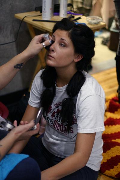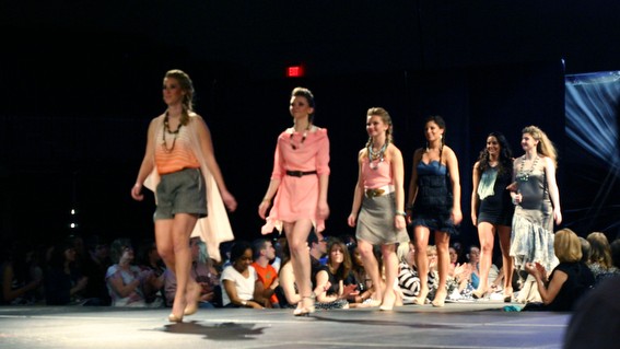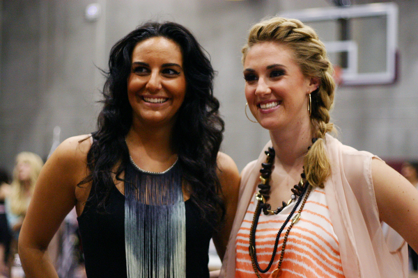 April 23, 2012 Campus Fashion, Featured, Style, Uncategorized After the runway: THREADS Designer Lindsey Raver Find out the behind to scenes look at the THREADS 2012 fashion show and senior Lindsey Raver's collection. The muted color palette was to combine the simple everyday clothing with the ornate celebratory clothing to form a less literal interpretation of the Aztec Indians. Senior designer Lindsey Raver designed five outfits for the THREADS 2012 Fashion Show. Her models Stefanie Dunham, Rachel Hojnacki, Kristen Clark, and sisters Lindsey and Hayley Chestnut wore her modernized Aztec clothing down the runway. Raver stated that her collection is a 100 percent her and her own original ideas. “I wanted to make the garments themselves very light and airy and simplistic while making the accessories more intricate and fun,” Raver said. “I chose more muted colors so that they would be able to work for a variety of different skin tones and hair colors and so the gold, silver, and turquoise jewelry would be enhanced.” She loves being a designer because it allows her to use her artistic background. Raver has been involved in art since she was young and decided to come to Central Michigan University to pursue a career in apparel design. “My inspiration to design for fashion was the interest in creating something that not only used art in a different way, but that was able to literally come to life, seeing that happen at THREADS this year has officially got me hooked,” Raver said. Experiencing THREADS for the first time was a learning process, and was a great way to go through the process of creating a collection. “Creating a collection from creating the trend board all the way to sending my girls down the runway gave me a little taste of what it really takes to be a designer and the hard work, dedication, and creativity it really takes to create something out of nothing,” she said. “Even with all of the meltdowns, creativity blocks, broken needles, and nights of no sleep, the feeling I had seeing those girls on the runway in my designs made it all worth it.” Raver is very proud of her collection and her models. The collection is how she envisoned it and would want to sell to her clients. She said her models have been amazing through the entire process and are having fun with the show. “Looking back now that it is over and all the craziness is behind us, I did enjoy the experience.” “Designer Lindsey Raver (left) poses with model Stefanie Dunham (right) backstage at the THREADS 2012 Fashion Show. (Alex Woolworth- gcmag.org)”