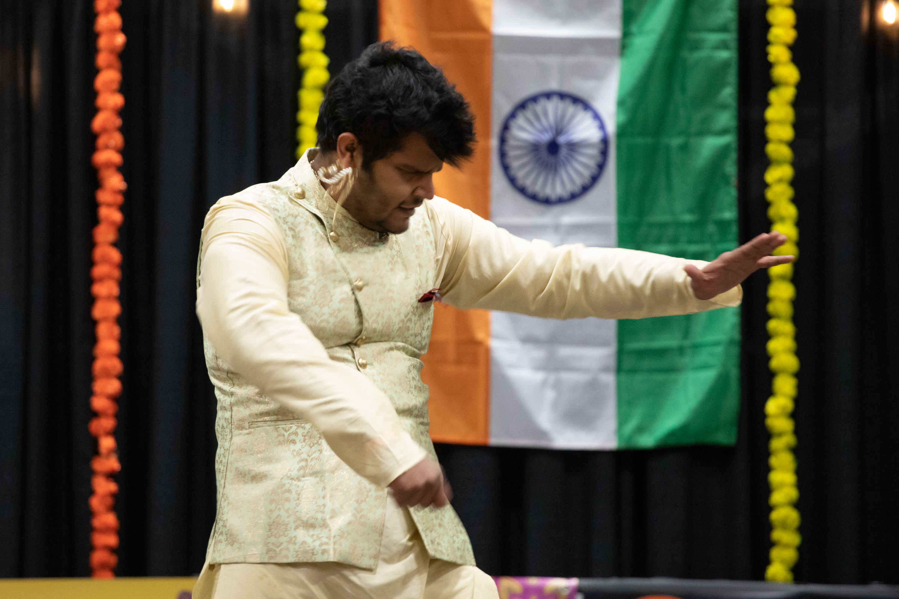 November 14, 2022 Student Lifestyle Celebrating Diwali: the festival of lights Story by: Maddie Lajewski Photos by: Rebecca Particka Colorful saris and kurtas, performances, and a large feast are the three core things that make a traditional Diwali celebration. On Saturday, Nov. 12, students, faculty, family and friends gathered in Finch Fieldhouse for Diwali night, an event coordinated by the International Student Organization at Central Michigan University. “Diwali, the largest and most significant festival of the year in India, is a celebration of light over darkness, good over evil, and the human capacity to persevere,” international graduate student Deepthi Mamillapalli said. “Diwali is the national celebration of India. It is celebrated by Hindus, Jains, Sikhs, and Buddhists, and hence has no single origin myth. However, even though each religion has its own historical explanation for the festival, they all ultimately depict the triumph of virtue over evil.” In the corner of the stage was a table with unlit diyas (oil lamps) and a painting of Lakshmi, the goddess who is primarily worshiped during Diwali. Diwali is associated with Lakshmi, the Hindu goddess of wealth and good fortune. An image of Lakshmi and two diyas, or oil lamps, were on dispaly at Central Michigan Univeristy’s Indian Student Association’s Diwali Night in Finch Field House in Mount Pleasant Mich. on Nov 12, 2022. President Bob Davies, along with Professor James Melton, Professor Vishal, Professor Kyle Nothstine and others all participated in lighting the first diyas that began the celebration. “Overcoming evil is also about prosperity and joy, and creating wealth and not just pausing in the sense of the materialistic aspects; but the wealth of the soul, wealth of relationships and friendships,” Davies said. Honored guest at Central Michigan Univeristy’s Indian Student Association’s Diwali Night light the diyas in Finch Field House in Mount Pleasant Mich. on Nov 12, 2022. Davies gave a speech about how Diwali is an opportunity for people of different backgrounds to learn about different cultures and come together to celebrate good in the world. “It is also about thinking about how we can grow and move forward together in a very strong sense of relationships, it’s about communities coming together,” Davies said. “It is about diversity, equity and inclusion in the truest and richest forms. That is why, to me, Diwali, the festival of light, bringing together all of our communities is such an important part and especially to have it happen here. In Finch Fieldhouse, where it’s known to be a gathering place for people of different backgrounds, different thoughts and ideas to come together and not see our differences, but to see our similarities and how we can overcome darkness. Where knowledge and prosperity look forward.” A variety of different faculty, family and friends attended the event for different reasons. Dine and Connect residential supervisor Nichole Brickner attended the event to support all of her international student employees. “My students,” Brickner said. “They begged me last year and I didn’t get to go, so this year I actually got the chance to come. I was excited.” A key part of the celebration are the many different performances, including dancing and singing. In one of the dance performances, traditional dancer Sangeetha Madam and her team taught attendees hand movements and their meanings. That was a highlight for many attendees at the event. “Their hand movements,” Brickner said. “How they do that is beyond me. My hands do not move that way, but I’m hoping I can learn.” Sangeetha Madam and her students demonstrate how to do finger movements at Central Michigan Univeristy’s Indian Student Association’s Diwali Night light the diyas in Finch Field House in Mount Pleasant Mich. on Nov 12, 2022. Finger movements are unique to India’s dance style. Each movement represents a Sanskrit symbol. Along with Diwali being a major holiday, many enjoy spending quality time with their family, something many international students miss during this time of year while studying in America. “As many of our Indian students are away from their families while attending school, I am aware that the ability to celebrate was vital to them,” Mamillapalli. “Many of us are unable to be with our families during this critical time of year, so it meant so much to be able to celebrate here as a family. We are thankful for the chance to share our culture and traditions with the CMU students and faculty.” The Indian flag was displayed center stage at Central Michigan University.Anuska and Apoorva dance for Central Michigan Univeristy’s Indian Student Association’s Diwali Night in Finch Field House in Mount Pleasant Mich. on Nov 12, 2022.A dancer at the Central Michigan University’s Indian Association’s Dawili Night performs a contemporary Indian dance in Finch Field House in Mount Pleasant, Mich. on Nov. 12th, 2022.