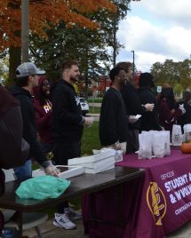 October 25, 2025 Campus Life, College Living, Community, Events, People CMU Homecoming 2025 Story and photos by: Brooke DuVall and Beth Nocerini The theme for homecoming this year is the maroon and gold brick road. Throughout the week students were able to participate in multiple activities around campus. On Tuesday, students had the chance to enter the Wizard of Oz PJ Contest and try their luck at a game of bingo! Organized by the CMU Activities and Events committee, the event attracted a large crowd of students ready to participate. Event Coordinator Kathlyn Allmacher explained how much went into organizing homecoming week, saying, “The committee’s actually been working since last spring and over the summer. We met once a week, including four office hours each week.” Fellow committee member Bryanna Voss said planning this event was a bonding experience. “Everyone just works together, and we all came up with different ideas,” said Voss. “It was a lot of teamwork, you had the whole team helping you. It was a good group bonding experience.” Allmacher said this event can bring people together for a night of fun. “It gets the community together. They can bond while meeting new people and playing games,” she said. CMU student Lena Kandah enjoyed attending the event because it gave her the opportunity to step out of her daily routine. “I do think it’s fun to have the opportunity each day to do something new.It definitely takes you out of the routine and the monotony of class,” she said. Having been on the Community Council in the past, Kandah appreciates being able to attend as a spectator. “Freshman and sophomore year I was on the Community Council, so I competed in a lot of these events. They’re really fun now as a spectator, I like to watch the competitions, eat the food, and enjoy the vibes,” she said. The Biosciences Building was lively with friendly competition and school spirit, perfect for amping up Saturday’s homecoming game. Fire up chips! On Thursday, students were able to meet CMU football players and maroon ambassadors while picking up a free donut and apple cider outside of the university center. “If we have the students there being loud and crazy it will help” said Langston Lewis, wide receiver for the CMU football team on why students should attend the game this coming Saturday. When asked what the game plan was, he promptly responded with “win”. Shaleah Lewis is a junior on campus. When asked why she likes homecoming she said, “I don’t like football, I like the festivities and the excitement and getting dressed up”. While she has attended the different homecoming events, Shaleah said she is most excited for Rock Rally, which takes place Friday night in Warriner Hall. Chance Hamilton and Trevor Sparks are freshmen on campus and have been soaking in all the advantages homecoming offers. “It’s been a blast,” said Hamilton. “As a freshman it seems almost more personal than my high school’s homecoming, meeting all of the coaches and athletes was amazing,” said Sparks. Both freshmen are excited and fired up to go to the football game on Saturday. At Rock Rally, the 2025 Gold Ambassador was announced to be Biance Cabarios. On Thursday she was asked how she feels about hearing the results. Cabarios said, “So excited, this week has been so much fin and such an honor to be surrounded by such amazing leaders” and “I will be happy no matter what.”
