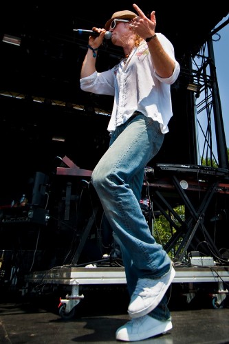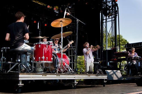 July 10, 2011 Arts & Entertainment, Events, Featured, Music Electric Forest 2011: The Macpodz The Macpodz performing on the Sherwood Court stage at the Electric Forest Festival at Double JJ Ranch in Rothbury, Mich. on July 2, 2011. Ryan Nielsen | Visuals Editor Not all musicians are easy-going. Stress from all aspects of performing can quickly build upon young performers, and transform them into someone their 16-year-old selves would never recognize. Many performers are anal retentive perfectionists, and many more are quiet, reserved and uninterested in interviews. Those that can master the music, and the stressful strain of touring, are truly artists. While some artists count down from ten and take a deep breath, not taking things too seriously has become a business for the Ann Arbor favorites, The Macpodz. Serious business. The band, (keyboardist Jesse Clayton, bassist Brennan Andes, percussionist Nick Ayers, trumpeter Ross Huff and drummer Griffin Bastian), began with accompanying spoken word sessions for the social activist, and poet John Sinclair – who became instrumental in the early days of the Macpodz. Nick Ayers, vocalist and percussionist for The Macpodz cruises the stage while singing during their performance on the Sherwood Court stage at Electric Forest. Ryan Nielsen | Visuals Editor In 2006, the group experimented with a Charlie Parker classic, infusing the tune with a roller rink beat of sorts. This led to the creation of their self-coined genre, “Disco Bebop”. Disco Bebop, what many may refer to as “Jazz Fusion”, is a collection of jazz standards, steady grooves and world sounds – certainly party music. The Macpodz played at the Sherwood Court, Saturday at 2p.m. to an energized Electric Forest crowd. Teeming with original attitude, the show boasted a hefty turn-out, incited an advanced dance party, and sported the highest nudity ratio of any performance at Electronic Forest. Once again, party music. The group is known to frequent Mount Pleasant’s own Rubble’s Bar, and plans to be back by fall (after their busy summer of touring of course). The ‘Podz’ can also be found regularly visiting Kalamazoo, where the band has played countless shows – including a New Years Eve bash at Bell’s Brewery. The style of this group is truly one of a kind. Their music is fresh, loud, and technically driven. Deeming the Macpodz a jam band is a gross simplification of their abilities, and originality. “Jam band” is a term that is thrown around about as often as the word “ironic”. Just as many situations are often coincidence rather than irony, many bands are technically oriented – not jam bands. These songs have structure, but nothing too serious…remember? The Macpodz at Electric Forest from Ryan Nielsen on Vimeo. Latest tracks by The Macpodz The Macpodz’s keyboardist, Jesse Clayton playing during The Macpodz’s performance on the Sherwood Court stage at the Electric Forest Festival. Ryan Nielsen | Visuals Editor Griffin Bastian keeps the beat going during The Macpodz’s performance at Electric Forest. Ryan Nielsen | Visuals Editor The Macpodz performing on the Sherwood Court stage at the Electric Forest Festival at Double JJ Ranch in Rothbury, Mich. on July 2, 2011. Ryan Nielsen | Visuals Editor Nick Ayers, vocalist and percussionist for The Macpodz cruises the stage while singing during their perform on the Sherwood Court stage at Electric Forest. Ryan Nielsen | Visuals Editor