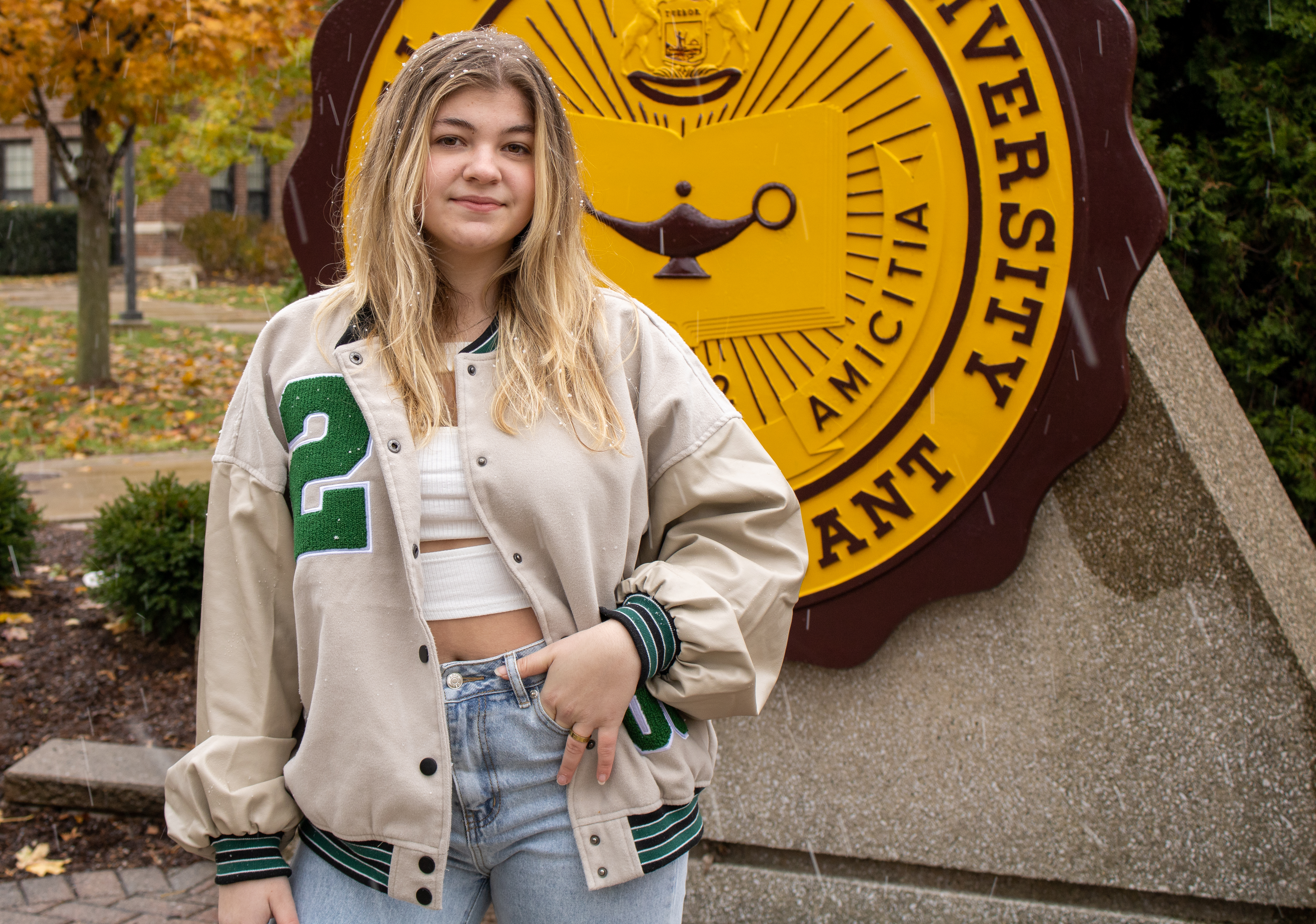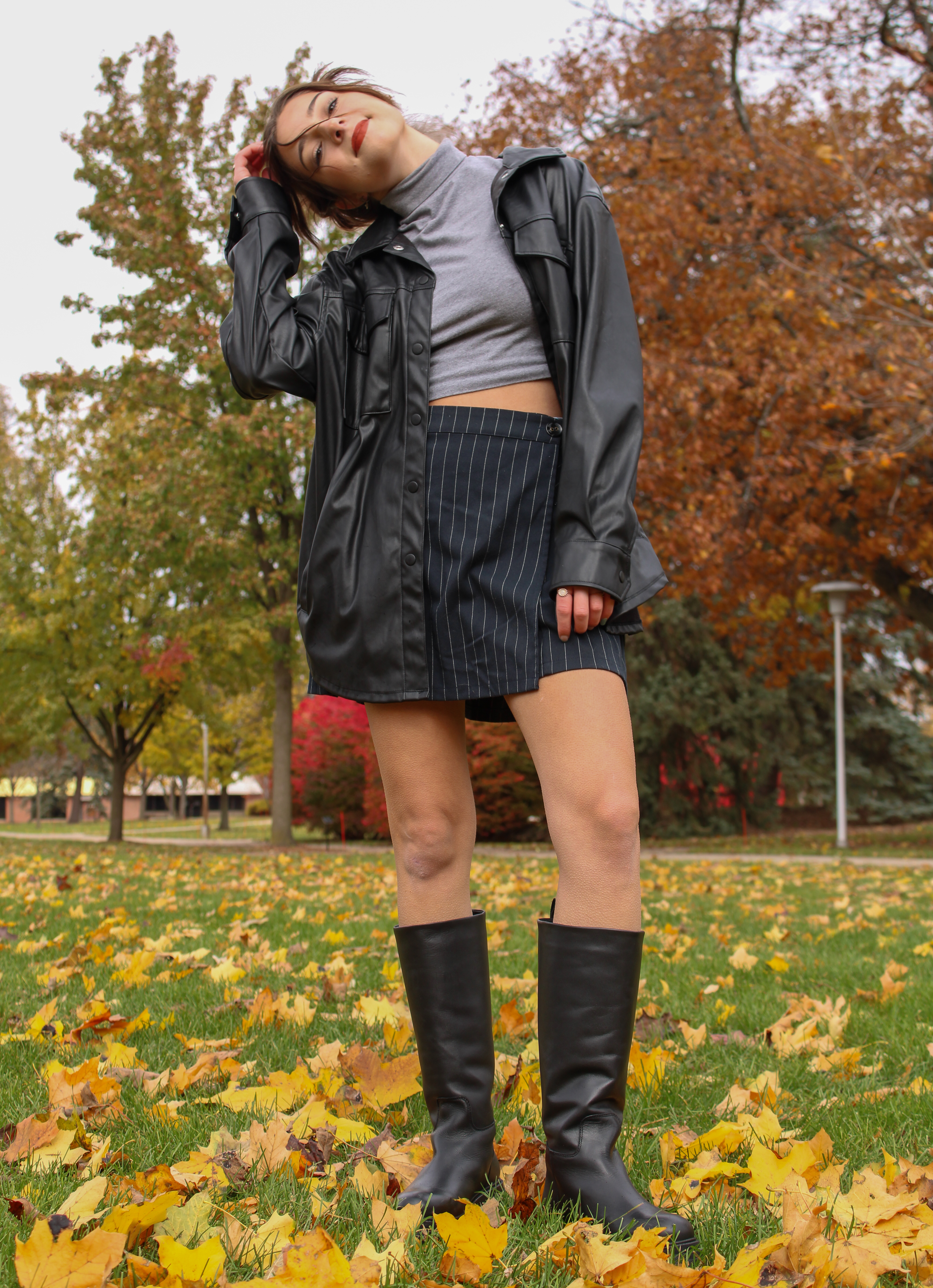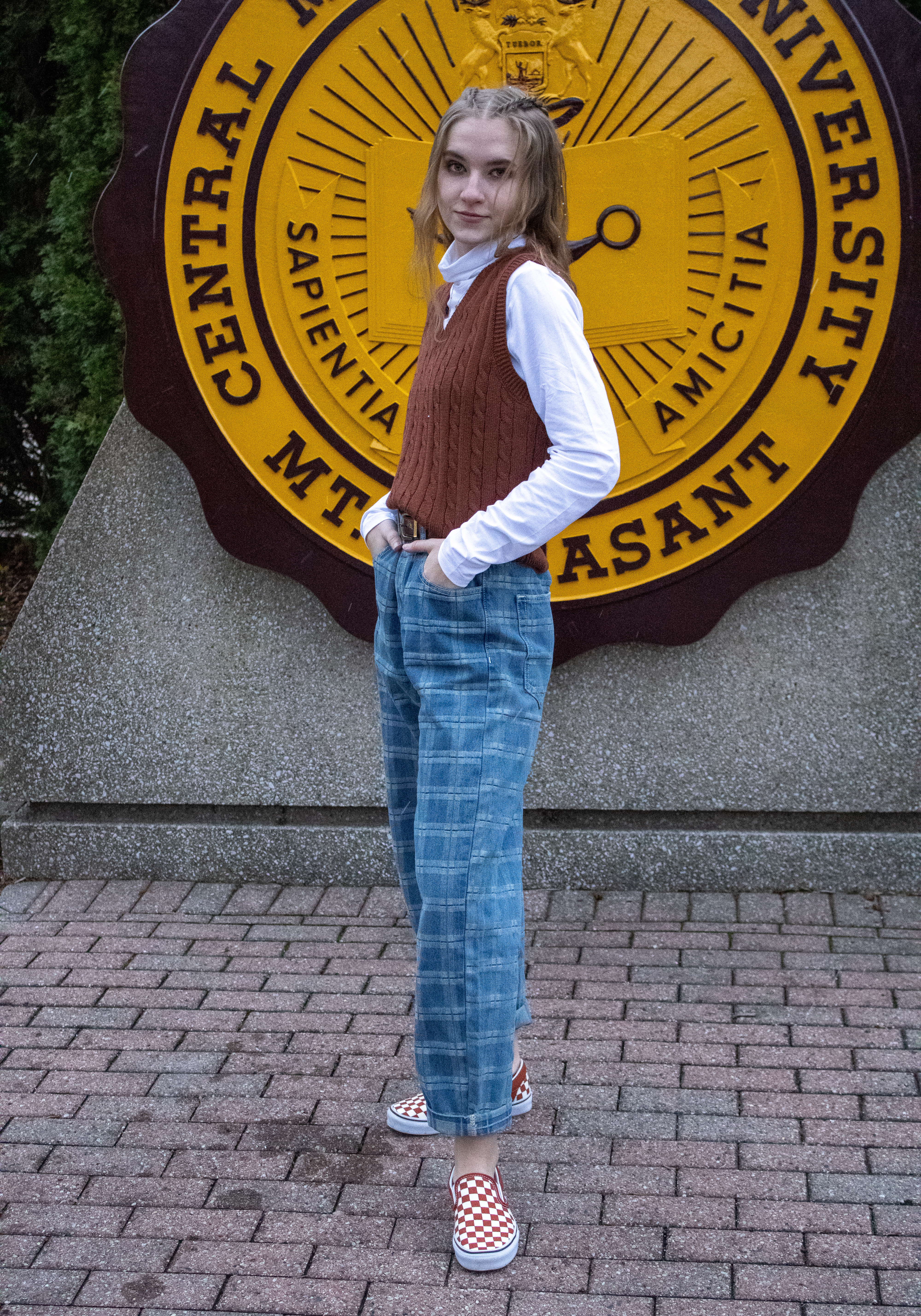 November 30, 2021 Style & Beauty Fall Fashion Story by Megan Mearnic Photos by Maddi Hill As the leaves start to change and the temperature starts to cool off, CMU students have perfect opportunity to show their fall fashion. Rachel Zauel is a senior majoring in Fashion Merchandising and Design and minoring in Cinema Arts. She said she loves all types of fashion, especially vintage clothing. “My fashion changes with the day, but I like to take mainstream fashion trends and twist it to make it more personal,” Zauel said. Her style inspiration comes from old movies and music. “I love ‘80s and ‘90s music, so most of my style inspiration comes from there. Freddie Mercury is an icon, and most of my inspiration comes from him,” she said. “I also get inspired from movies like Heathers and 10 Things I Hate About You.” During her time at Central Michigan University, Zauel was able to study abroad in Paris. She got to take classes at Paris American Academy, attend a fashion show in Antwerp, and go to London to see a special Dior exhibit. “This study abroad taught me a lot about fashion, but also gave me insight into the world,” she said. Zauel is currently a part of Threads, a student-run fashion show on campus. Her freshman year she started off as a model and progressed from there. Now, as a senior, she is a producer. “Being a producer for Threads is so special because it’s an opportunity that you wouldn’t expect to experience in Mount Pleasant. I’ve gotten to meet so many different people while being involved in the past four years,” Zauel said. “With Threads I can utilize my creativity and develop my professional skills.” Sophomore Joelle Beauchamp is a Fashion Merchandising and Design major. She describes her fashion sense as modern but trendy, and she loves to style basic clothing with fun pieces of color. “I get my style inspiration from multiple different places. Most of it comes from social media influencers and movies,” she said. “Influencers like Taryn Cumbo, Josefine H.J., Matilda Djerf, and movies such as Devil wears Prada, Cruella De Vil and Sex in The City.” The friends she has made in the FMD program inspire her as well. Beauchamp loves the FMD program. She said the professors make the classes enjoyable and believes it will prepare her well for her future. In the spring semester, she will be taking Fashion Show Production and will be able to help plan the Threads fashion show. She is currently a part of the Fashion Association of Merchandising and Design, a fashion RSO on campus. Beauchamp has made several new friends through this club. They have lots of socials and are planning a trip to New York City this winter. “This is a great RSO for fashion majors or anyone interested in fashion,” she said. Carmella Contesti is a junior majoring in Fashion Merchandising and Design and minoring in Business Administration. “I don’t have a set fashion style; it tends to change depending on the day or mood,” Contesti said. Her favorite is street wear mixed with comfort and lots of color. Her shoes are her main fashion statement. Her fashion inspiration comes from movies, music and people. “I get my inspiration from influencers and celebrities like Hailey Bieber and other streetwear influencers,” she said Contesti described the FMD program as a comfortable space that allows her to be creative and collaborate with others in the program. She said the professors allow you to express your style and create a lot of opportunities for their students. She is currently a part of the Fashion Association of Merchandising and Design, a fashion RSO on campus. “When I graduate, I would like to move to California and become a stylist and work on movie sets,” she said. Sophomore Isabella Silos is double majoring in Dance Studies and Theatre Interpretation and minoring in Entrepreneurship. Silos does not have a specific style that she associates with. “I dress on the spectrum of masculine and feminine and have a style that is unique to myself,” she said. When looking for style inspiration she doesn’t turn to social media. Being a dancer has influenced her style. “I wear whatever I feel comfortable in, meaning I find different textures and pattern that work well together, I dance every single day so I must accommodate that,” she said. She tends to take more inspiration from men’s fashion and molds it with women’s fashion. Silos is currently dancing with a dance team that is unaffiliated with CMU. “I am currently a part of a dance family called The Pursuit of Ahhwesomeness which is run by Professor Bird. We perform at Mainstage, music festivals such as Breakaway, compete at World of Dance, Host dance battles, dance in high end stores and perform at halftime during basketball games,” Silos said. “We are sponsored by Nike, Sprayground and Red Bull.”