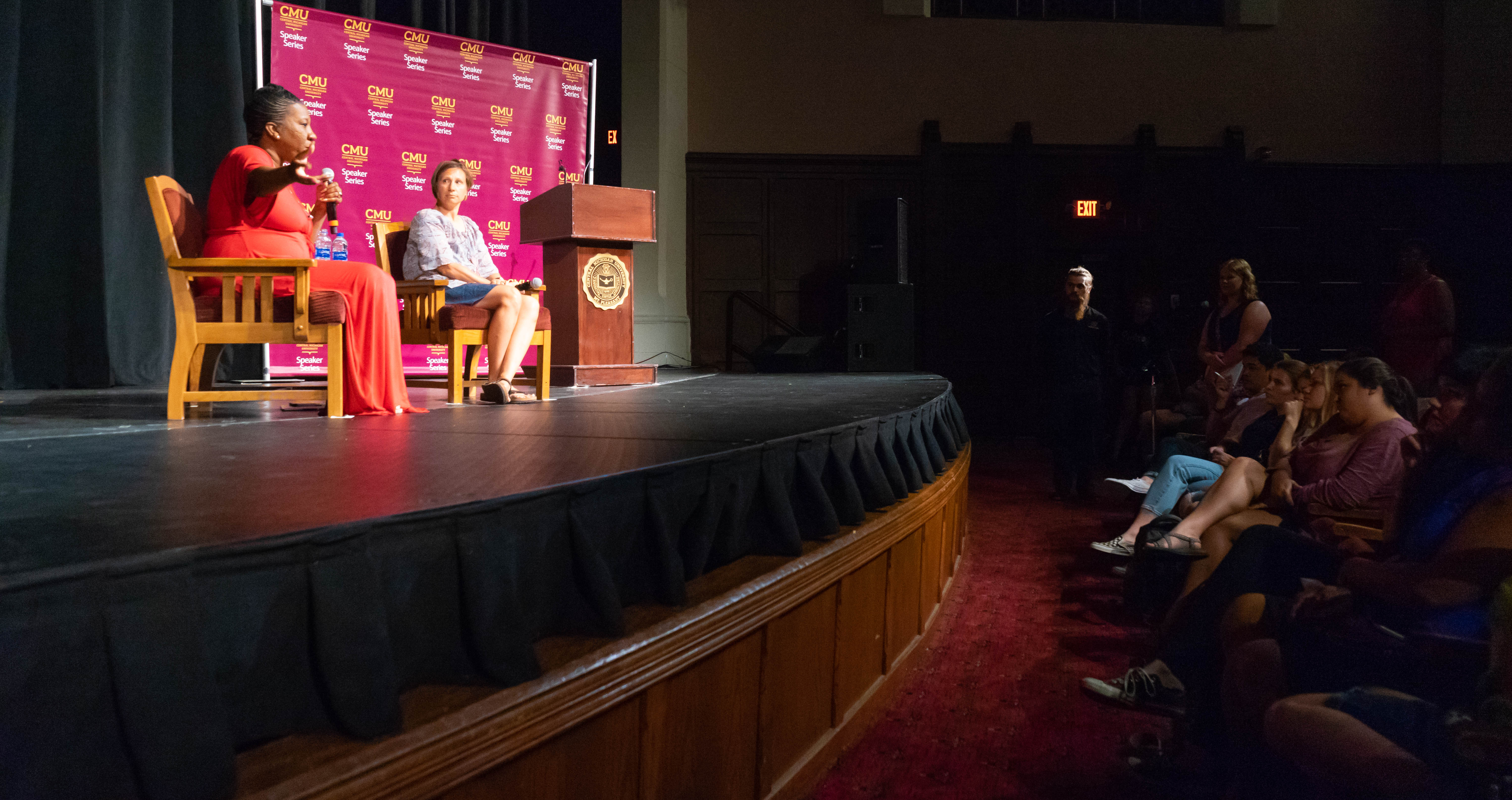 September 19, 2018 Arts & Entertainment, Events, Events, Events, Student Lifestyle #MeToo: The Legacy of Tarana Burke Story and photos by Rickey Portis Tarana Burke, the creator of the #MeToo movement that took Hollywood and the rest of United States by storm, came to Central Michigan University Monday, Sept. 17 to speak to the community about her legacy. Burke had actually started the #MeToo movement on social media in 2006, but it didn’t hit mainstream media until about 2017 when accusations against famous film-producer Harvey Weinstein came to light in a post by actress Rose McGowan. Suddenly, sexual assault survivors from all walks of life were coming forward with their stories of sexual harassment and assault, particularly in the workplace. At first only supportive and encouraging feedback was exchanged, but skepticism and counter-accusations followed in close pursuit, especially attacking credibility. “This is a movement about healing and taking action, and if we distract from that, in a way will miss an opportunity… Don’t be distracted by the noise, all the noise will distract you from the mission… This is not a movement about taking down powerful men, to be honest these men have less to do about the the women who have spoken up against them, this is about finding a frequency where they are heard. A Harvey Weinstein can not exist for decades without the complexity of those corporations,” said Burke during her event in the Plachta auditorium. Left: Staff Member Sarah Fiorillo, “The me too movement gives women from all different backgrounds a platform to share their stories.” Right: Senior Mark Heideman, “The Me too movement empowers those who have experienced trauma in the form of sexual abuse.”Left: Senior Samantha Daily, “The Me Too movement brings together men and women in a positive environment where it’s safe to talk; it’s important for people to get their stories out there and get more recognition so that sexual assault will be taken more seriously.” Right: Danielle Horton, “The me too movement is a collection of women to come together to share in their experiences; it’s a call to action for women to share their stories and not be a ashamed.”