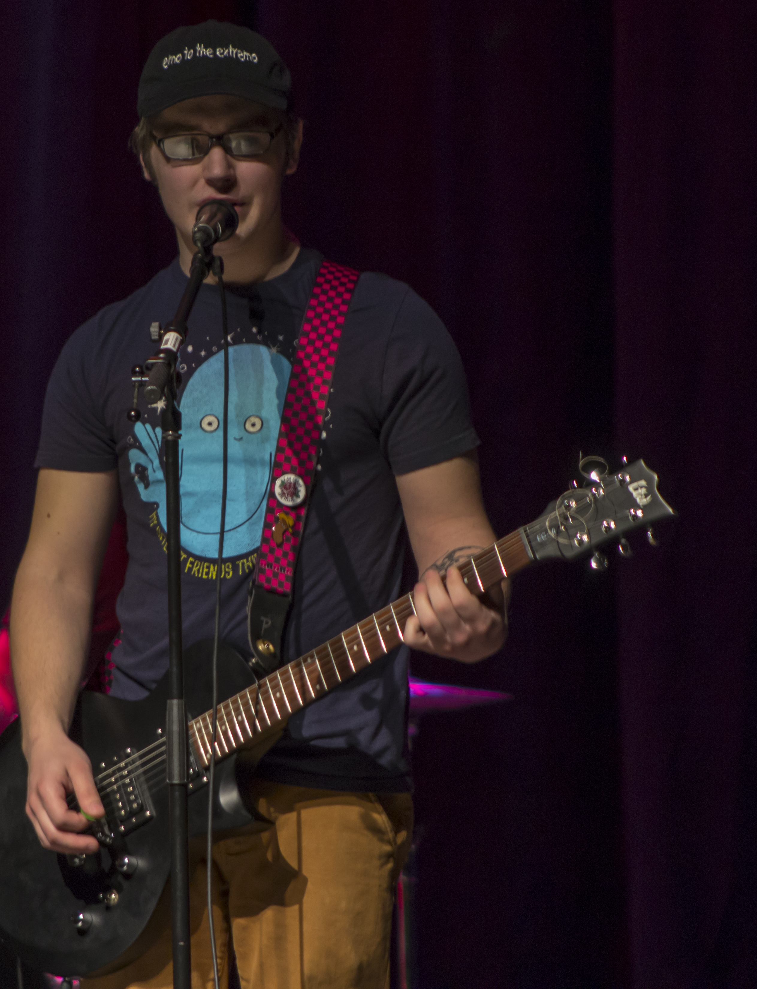Car Crash Rhetoric came on after Armstrong and at first they experienced some technical difficulties, but they got their set rolling quickly. The pop punk band performed four original songs. The band included guitarist Kyle Engel, drummer Jacob Seavey, and bass player Jeremy Wattie. Each of them is a CMU student.