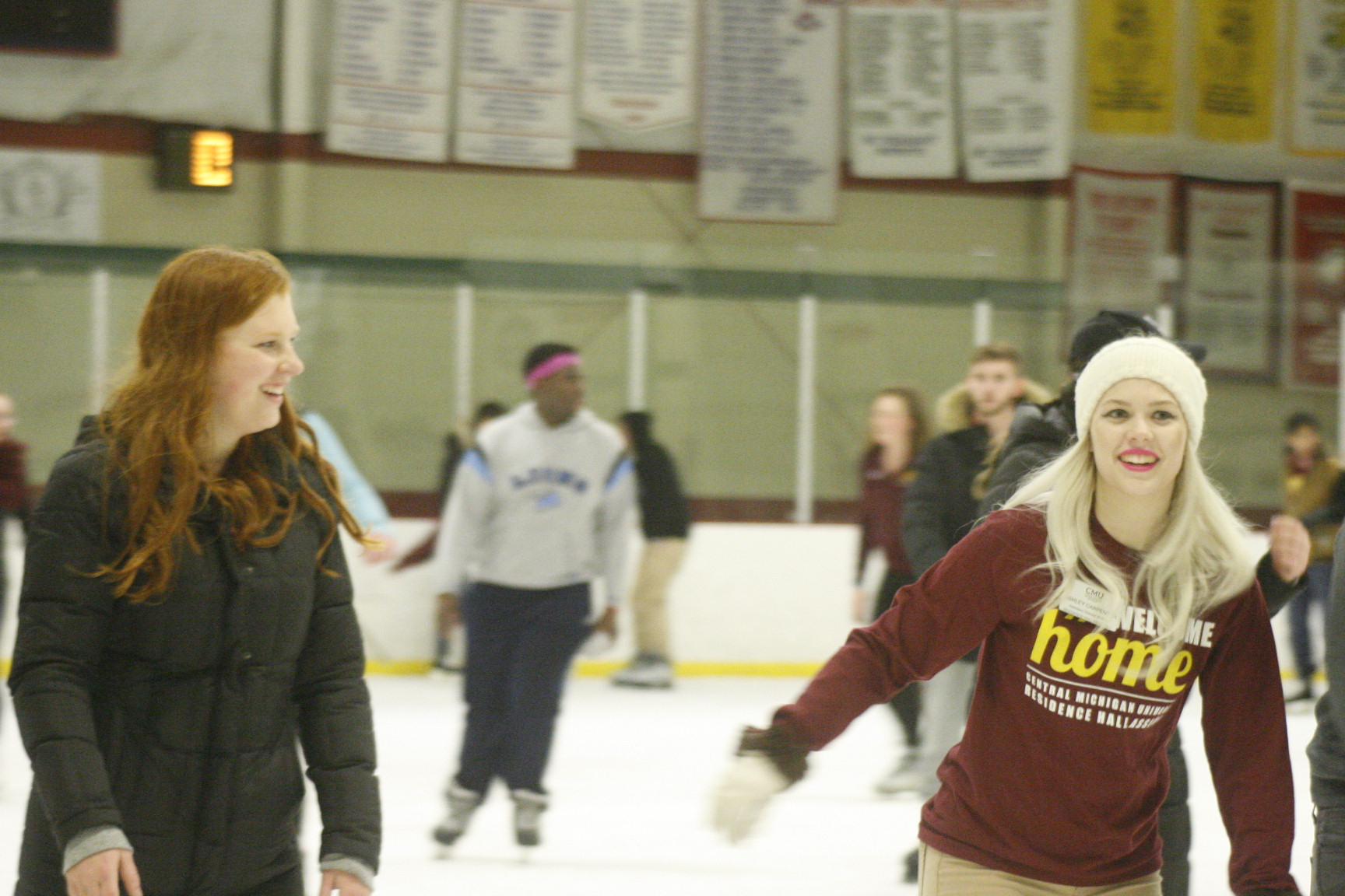 January 25, 2017 Events, Student Lifestyle, Students Students Ice Skate to Help Local Women’s Aid Shelters Story & Photos by Clarissa Kell On Thursday, Jan. 19, Isabella Ice Arena was packed full of Central Michigan University students enjoying an opportunity to skate for a good cause until the wee hours of Friday morning. Residence Hall Assembly organized an event called RHA Socks and Skate, where students could skate and donate socks for the two local women’s aids shelters. Central Michigan University students donate socks at the RHA Socks and Skate event, Isabella Ice Arena, 5165 E. Remus Rd., Mount Pleasant, Michigan, Thursday, Jan. 19, 2017. The event was free for the first 200 students and then cost additional students $1 to skate. RHA Assistant Director Ashley Carpenter, said all of the proceeds of this event and the DREAM program coming up will be equally donated with the socks to the two women’s aid shelters in the area. Carpenter, a Milford senior, said there were around 500 students at the event who were able to skate. She said some students left due to long lines, but RHA was still pleased with the turnout. Lacing Up for a Cause For some students, like Leon Bell, ice skating was a new experience. Bell, 20, said he grew up in Flint and never really had the opportunity to go ice skating at a pond. He said there are ice rinks near him but he never considered trying it out until now. The sophomore said he found out about the event through his residence hall’s president and other people that lived on his floor. Bell said he enjoys rollerblading and heard that it was similar to ice skating so he gave it a shot and loved it. He said if RHA does an event like this again that he would definitely be attending, but would make sure to arrive earlier. Carpenter said RHA would like to do another skating event this year, but it might be at the roller rink instead of ice arena. She said RHA has different projects and events they’re currently planning, but they will let students know when the next skating event will take place. Ashley Carpenter, maroon shirt, enjoys her turn to skate after she got everyone else on the ice, Isabella Ice Arena, Mount Pleasant, Michigan, Thursday, Jan. 19, 2017. Students skate and take photos, Isabella Ice Arena, Mount Pleasant, Michigan, Thursday, Jan. 19, 2017. CMU students learn the difficulties of ice skating, Isabella Ice Arena, Mount Pleasant, Michigan, Thursday, Jan. 19, 2017. Two CMU students take off their skates together, Isabella Ice Arena, Mount Pleasant, Michigan, Thursday, January 19, 2017. Central Michigan University students wait for their turn to check into the RHA Socks and Skate event, Isabella Ice Arena, Mount Pleasant, Michigan, Thursday, Jan. 19, 2017. Two CMU students help each other keep balance while skating, Isabella Ice Arena, Mount Pleasant, Michigan, Thursday, Jan. 19, 2017.
