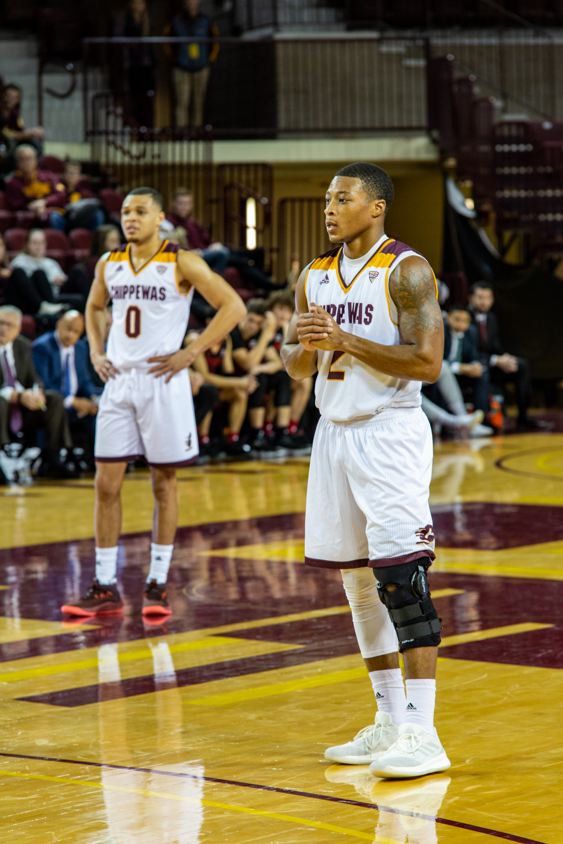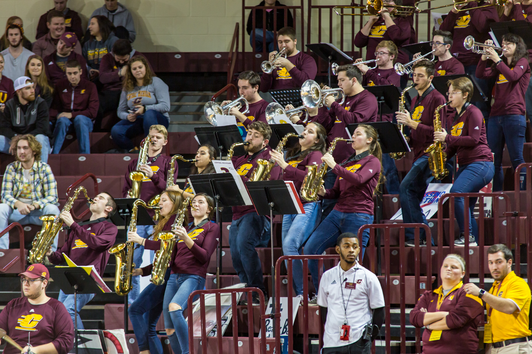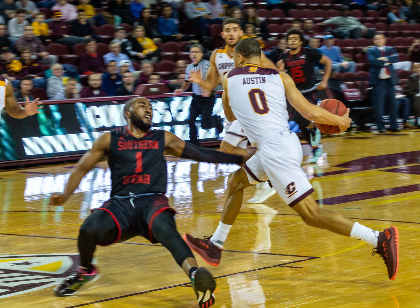 December 9, 2018 Athletics, Events, Photo Gallery, Sports, Student Lifestyle, Students Saturday Men’s Basketball: Last Game of the Semester Photos by Xavier Mendoza Students and families gathered at the McGuirk Arena to watch their favorite Men’s Basketball team face off against the Southern Utah Thunderbirds. The visitors challenged the Chippewas defensively but CMU still won 95 – 86. Their record now advances to 8-2, while still being undefeated at home, 4-0. Their next game will be at home against the UMKC Kangaroos on Dec. 19. Guard, Larry Austin Jr. (0), euro steps and breaks Southern Utah’s Forward ,Kenton Eskridge ‘s (1), ankle for a path to the hoop during their game at home on Dec. 8, 2018. Forward, Robert Montgomery (5), stays focused to transition to defense as he watches his teammate shoot a free throw during the game.Forward David DiLeo (14) shoots a three during the first half of the Chippewas’ game against the Thunderbirds.The CMU Cheer Team starts the night by stunting during the first media time out during the Chippewas’ game against the Southern Utah Thunderbirds.A student shoots a ball during a game promotion at half time during the Chippewas’ game against the Southern Utah Thunderbirds. Grand Blanc sophomore, Mackenzie Clark, smiles at the sidelines with the CMU Dance Team during the Chippewas’ game against the Southern Utah Thunderbirds.Guard, Larry Austin Jr. (0) dribbles the ball down the court during the Chippewas’ game against the Southern Utah Thunderbirds.The 6th Man Band of CMU cheers against a free throw during the Chippewas’ game against the Southern Utah Thunderbirds.A student tries her luck to win $100 for her whole row during a promotion during the Chippewas’ game against the Southern Utah Thunderbirds.Guard, Larry Austin Jr. (0) soars for a dunk during the first half of the Chippewas’ game against the Southern Utah Thunderbirds.The dance team performs during the media time out of the second half Chippewas’ game against the Southern Utah Thunderbirds.The 6th Man Band of CMU pumps up the crowd Chippewas’ game against the Southern Utah Thunderbirds.The CMU Cheer Team fires up with Central colors at the end of the half time break Chippewas’ game against the Southern Utah Thunderbirds.The 6th Man Band of CMU cheers against a free throw during the Chippewas’ game against the Southern Utah Thunderbirds.Guard Shawn Roundtree (2) and Guard Larry Austin Jr (0) stand ready during a free throw to transition to defense during the Chippewas’ game against the Southern Utah Thunderbirds.Forward Robert Montgomery (5) calms himself down to shoot a free throw during the Chippewas’ game against the Southern Utah Thunderbirds.Guard, Larry Austin Jr. (0), euro steps and breaks Southern Utah’s Forward ,Kenton Eskridge ‘s (1), ankle for a path to the hoop during their game at home on Dec. 8, 2018. Milford freshman, Gabbi Williams, smiles on court as she cheers with the CMU Dance Team as the Chippewas win the game.