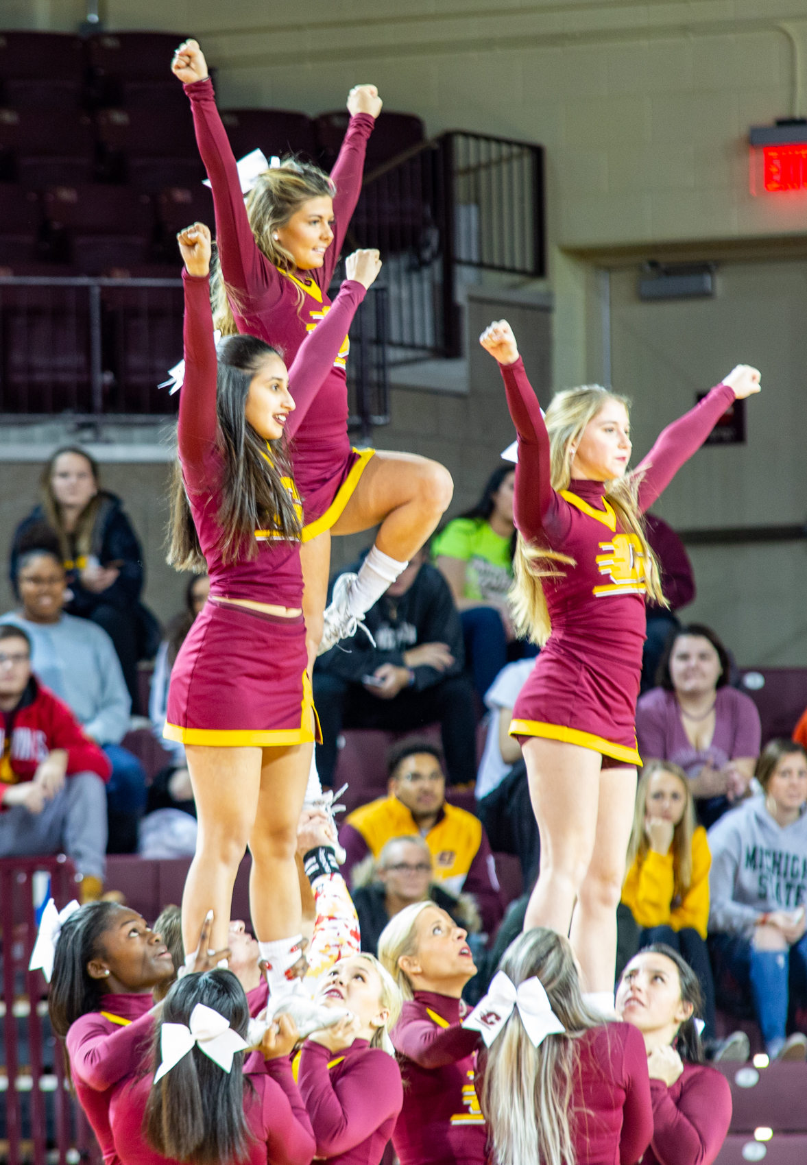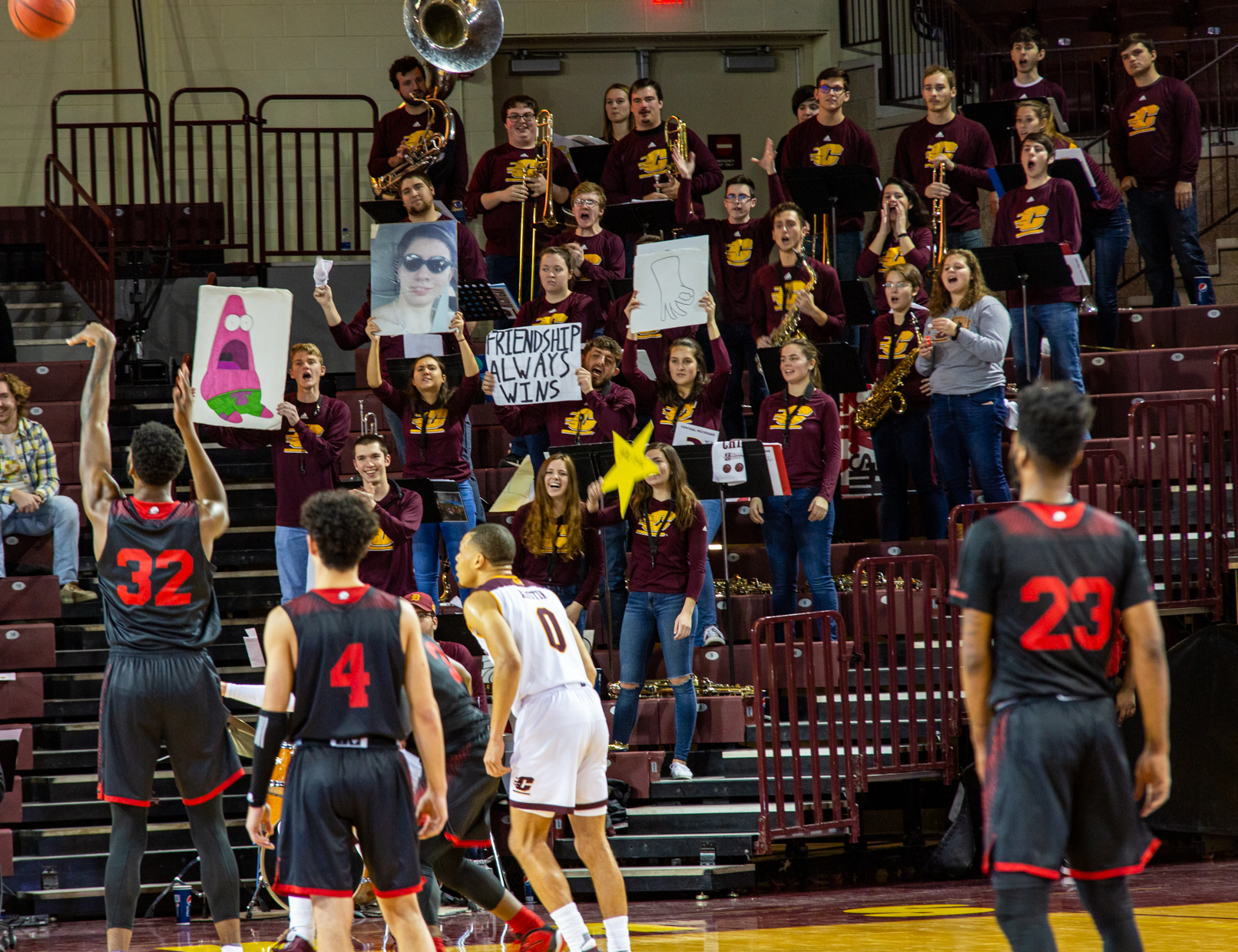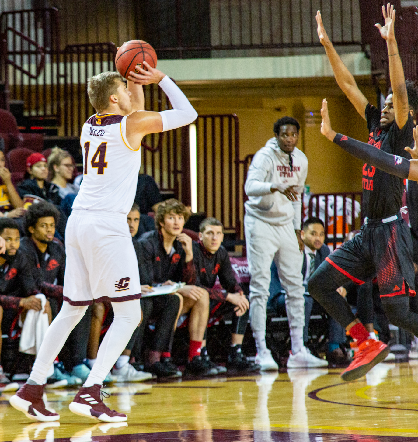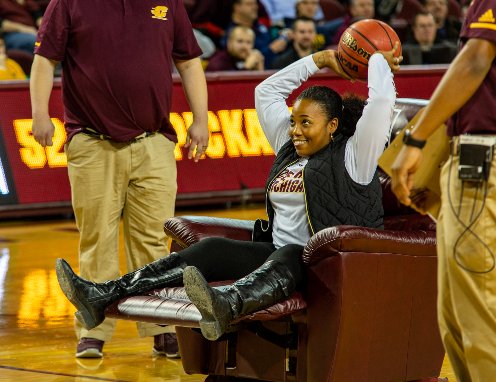 December 9, 2018 Athletics, Events, Photo Gallery, Sports, Student Lifestyle, Students Saturday Men’s Basketball: Last Game of the Semester Photos by Xavier Mendoza Students and families gathered at the McGuirk Arena to watch their favorite Men’s Basketball team face off against the Southern Utah Thunderbirds. The visitors challenged the Chippewas defensively but CMU still won 95 – 86. Their record now advances to 8-2, while still being undefeated at home, 4-0. Their next game will be at home against the UMKC Kangaroos on Dec. 19. Guard, Larry Austin Jr. (0), euro steps and breaks Southern Utah’s Forward ,Kenton Eskridge ‘s (1), ankle for a path to the hoop during their game at home on Dec. 8, 2018. Forward, Robert Montgomery (5), stays focused to transition to defense as he watches his teammate shoot a free throw during the game.Forward David DiLeo (14) shoots a three during the first half of the Chippewas’ game against the Thunderbirds.The CMU Cheer Team starts the night by stunting during the first media time out during the Chippewas’ game against the Southern Utah Thunderbirds.A student shoots a ball during a game promotion at half time during the Chippewas’ game against the Southern Utah Thunderbirds. Grand Blanc sophomore, Mackenzie Clark, smiles at the sidelines with the CMU Dance Team during the Chippewas’ game against the Southern Utah Thunderbirds.Guard, Larry Austin Jr. (0) dribbles the ball down the court during the Chippewas’ game against the Southern Utah Thunderbirds.The 6th Man Band of CMU cheers against a free throw during the Chippewas’ game against the Southern Utah Thunderbirds.A student tries her luck to win $100 for her whole row during a promotion during the Chippewas’ game against the Southern Utah Thunderbirds.Guard, Larry Austin Jr. (0) soars for a dunk during the first half of the Chippewas’ game against the Southern Utah Thunderbirds.The dance team performs during the media time out of the second half Chippewas’ game against the Southern Utah Thunderbirds.The 6th Man Band of CMU pumps up the crowd Chippewas’ game against the Southern Utah Thunderbirds.The CMU Cheer Team fires up with Central colors at the end of the half time break Chippewas’ game against the Southern Utah Thunderbirds.The 6th Man Band of CMU cheers against a free throw during the Chippewas’ game against the Southern Utah Thunderbirds.Guard Shawn Roundtree (2) and Guard Larry Austin Jr (0) stand ready during a free throw to transition to defense during the Chippewas’ game against the Southern Utah Thunderbirds.Forward Robert Montgomery (5) calms himself down to shoot a free throw during the Chippewas’ game against the Southern Utah Thunderbirds.Guard, Larry Austin Jr. (0), euro steps and breaks Southern Utah’s Forward ,Kenton Eskridge ‘s (1), ankle for a path to the hoop during their game at home on Dec. 8, 2018. Milford freshman, Gabbi Williams, smiles on court as she cheers with the CMU Dance Team as the Chippewas win the game.