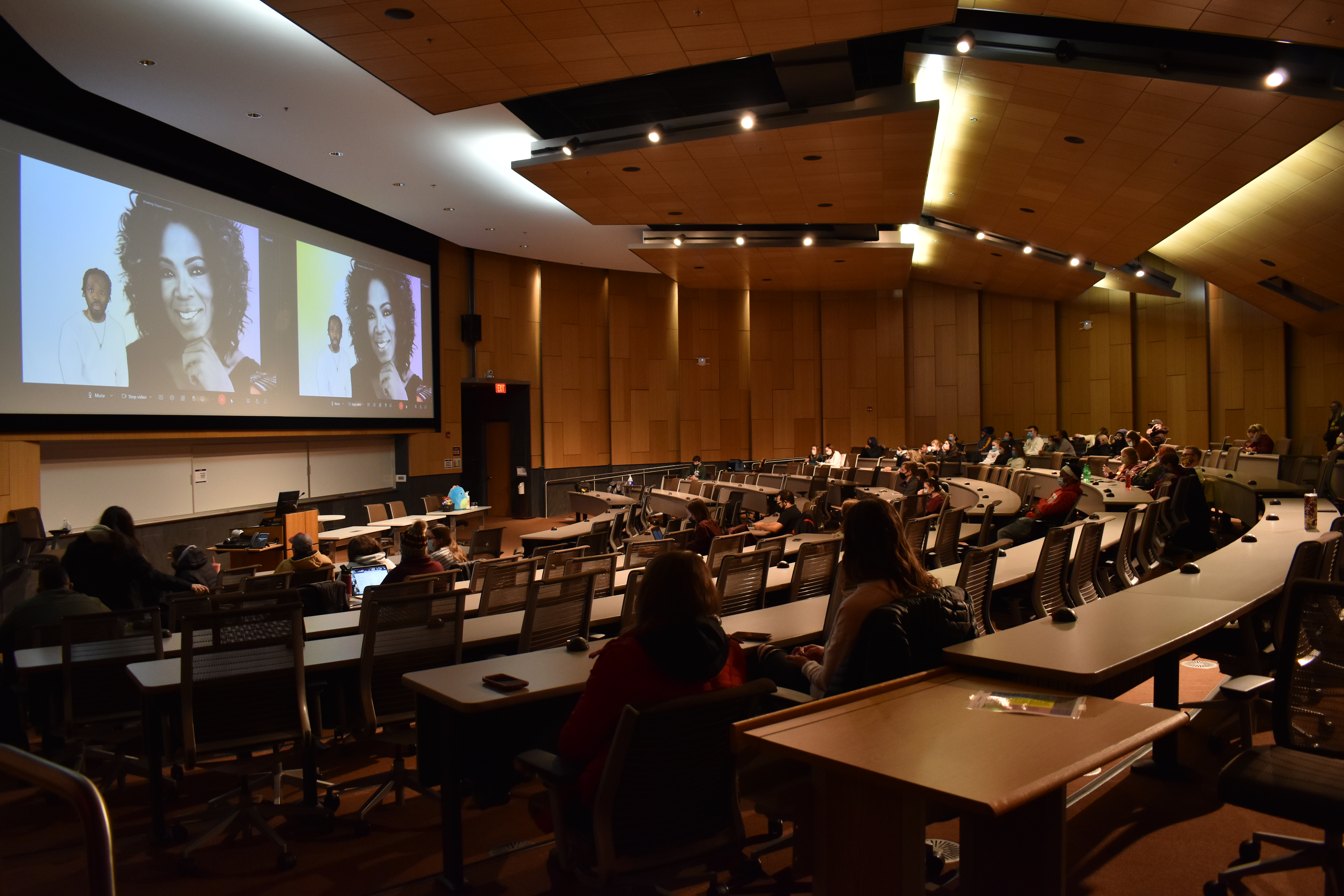 March 1, 2022 Student Lifestyle Shaun Boothe raps about black icons for Black History Month Story and photos by Maddie Lajewski Martin Luther King Jr., Muhammed Ali, Oprah Winfrey and Bob Marley. All of these iconic black figures were included in Shaun Boothe’s Black History Month event. Boothe was invited as a Black History Month guest speaker for Central Michigan University by Program Board on Thursday, Feb. 24. He is known for his Unauthorized Biography Series, which features raps on all of the influential black icons mentioned above. “Due to covid things, Shaun could not be here in person,” Program Board lecture director Jenna Worthington said. “But he is live streamed. It was still going to be very interactive, he was going to interact with the audience and anyone was more than welcome to come. Then after the event there was a live Q&A, followed by a prize raffle for a lot of people.” The event was held in French Auditorium in the Education and Human Services building on campus, which provided good space for students and two screens for Boothe’s livestream to be projected on to. Throughout the raps, Boothe included uncommon facts about each black icon, some that students and faculty may not have known. “I learned a lot about people that I knew, but their challenges going deeper and the obstacles that they’ve had to face,” Jen Nottingham, director of recreation programs and student activities said. “I really appreciated the one about Oprah, and what Oprah taught Shaun is really to kind of meditate and reflect and how to focus on within versus the external influences. How do you focus on the inside, the internal versus all of the external, the peer pressure we’re measuring ourselves against.” Both Worthington and Nottingham emphasized the importance of inclusivity and representation when planning these kinds of events, especially during black history month. “Personally for me as lecture director, one of my biggest goals has been creating inclusive programs that can relate to anyone,” Worthington said. “I thought he would be a very good person to bring to campus, very uplifting, very inspirational, and it would be someone that anyone could relate to because a lot of his focus is on hip-hop and history, so anyone could like him.” Nottingham, a white woman, explained how she goes about programming to make sure CMU is being as inclusive as possible. “I have to challenge myself knowing that I’m a majority,” Nottingham said. “Knowing where my skin color is, ask questions from students who don’t look like me, who have different backgrounds to kind of make sure we’re checking in.” Worthington hopes students and faculty learned a lot at the event, but most importantly that black students and faculty feel represented. “Personally the biggest goal I have for this event and what I want people walking away with is to feel represented,” Worthington said. “Having enough speakers on campus that can speak about black experience. Obviously I’m a little white girl, I don’t have the best experience, I don’t know the best way to do programming. I’ve talked to a lot of people, I personally do the most that I can. But for right now, for my experience if that’s bringing in an interesting speaker that can motivate and inspire students on campus, that’s kind of my main goal is for people to walk away and feel like ‘oh, program board does care about their students.’”