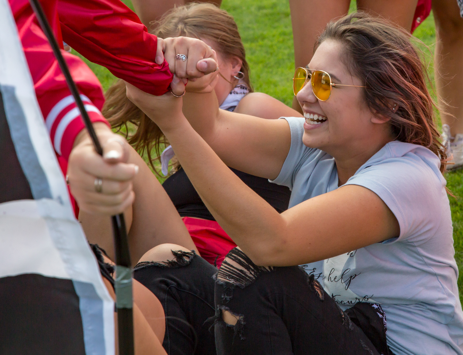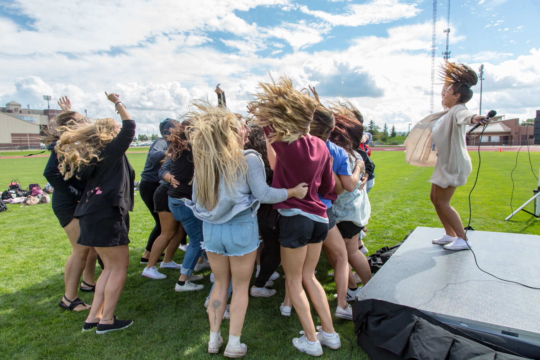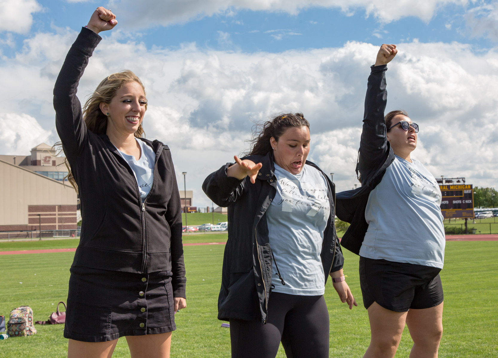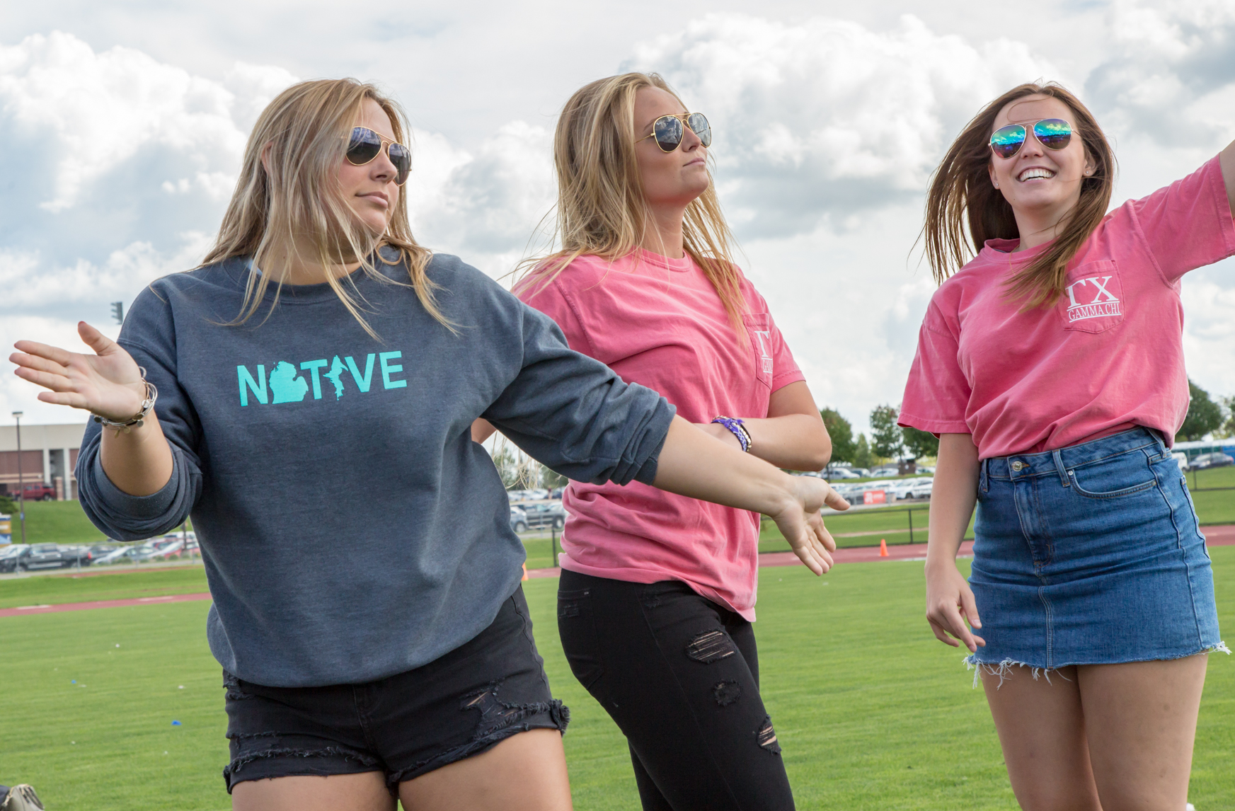 September 28, 2018 Campus Life, College Living, Features, Greek Life, Student Lifestyle, Students, Students Temporarily Losing Sisters to Gain 39 New Ones: The Life of a Gamma Chi Story and photos by Xavier Mendoza Senior Sarah Kalinowski dances as she and her fellow Gamma Chis will be leading the potential new members to jump to their chapters at the Lyle Bennett Outdoor Track and Field Complex at Central Michigan University on Sept. 21, 2018. Once a semester, potential new members (PNMs) go through sorority recruitment to try and get their bid from their prospective chapter. Many people see the surface level of these events through social media, an organization’s page and recruitment videos. PNMs and other spectators see the happiness, quirkiness and character of current sisters of each chapter— but for this system to do well, there’s always a group of people that have to lead the event from start to finish. They have a collective goal for the events to go as smoothly as possible. For recruitment, these leaders are called Gamma Chis. A Gamma Chi is a sorority member from a Panhellenic chapter that willfully disaffiliates from their letters to facilitate the ins-and-outs of recruitment. Senior Hannah Foy (right) holds on to senior Aubrie Clingaman as they and their fellow Gamma Chis get ready to lead the first potential new members to their jump to their chapters at the Lyle Bennett Outdoor Track and Field Complex in Central Michigan University on Sept. 21, 2018. Senior Josephine Krzesak was this year’s Vice President of Recruitment (VPR) for the Panhellenic Council. She said it was an eye opening experience to oversee the VPR’s of each chapter. “I was my chapter’s VPR last year so I kind of knew what I had to do,” Krzesak said. “I didn’t realize all the titles and job descriptions I had to be doing, but it was really fun.” Seniors Katie Haas (left) and Josephine Krzesak smile as they finish the final preparations for the last part of Bid Day at the Lyle Bennett Outdoor Track and Field Complex in Central Michigan University on Sept. 21, 2018. Throughout the process, Gamma Chis become neutral resources for the potential new members. They help facilitate meetings and talks as well as answer questions and give PNMs advice about recruitment. Senior Becca Kerry was a Gamma Chi recruitment councilor. She said she helped nine PNMs throughout the process. “It was really rewarding to see our group grow throughout the week and help them make their decisions and help them through the process that could have been difficult to do on their own,” Kerry said. “It was incredibly rewarding to be able to disaffiliate from my chapter for that time, and then be able to have an experience that I would not have had other wise. Then, be able to jump back in to my chapter, knowing that I helped those girls through recruitment to find their homes.” Senior Becca Kerry (left) dances with her fellow Gamma Chis as they celebrate their last moments together before jumping back to their respective chapters at the Lyle Bennett Outdoor Track and Field Complex in Central Michigan University on Sept. 21, 2018. Kerry said one of the hardest parts of the experience was knowing that a PNM in her group wouldn’t get their preferred chapter and that it could result with that person dropping out of the process. “It was really difficult to see the girls in my group get backed by their bottom chapter that they may have dropped the day before and be dropped by their top chapter,” Kerry said. “Then, having the conversation that it isn’t anything personal or have anything against them. It’s just kind of how the system works and encouraging them to continue the process.” With such a big event, the Gamma Chis said they leaned on each other for support throughout their time together. Krzesak said due to her position, she was able to make connections with members from other chapters, that she might not have been able to form without it. “Our paths would have never crossed, but because we were Gamma Chis, we were able to hang out every few times a week doing workshops. I made a lot of close bonds with them,” she said. Senior Josephine Krzesak’s tears are bitter sweet as her journey with her fellow Gamma Chis come to an end as she gets ready to jump back to Alpha Chi Omega at the Lyle Bennett Outdoor Track and Field Complex in Central Michigan University on Sept. 21, 2018. Kerry said before the experience, she didn’t think she would get as close to her fellow Gamma Chis. “All the girls that formed the, ‘Gamma Chi Chapter,’ per-say, came from different sororities and we didn’t know each other that well,” she said. “By the end of it, we were almost sad to jump home because that means we wouldn’t all be in the same ‘chapter’ anymore.” Similar to other organizations and their executive boards, those who have experienced being a Gamma Chi before have the option of returning for the experience again. Kayla Garza was the Executive Vice President of the Panhellenic Council. This was her second year with the position. Senior Kayla Garza arrives at the track to join her fellow Gamma Chis on final preparation to lead their potential new members to jump into their chapters at the Lyle Bennett Outdoor Track and Field Complex in Central Michigan University on Sept. 21, 2018. “It was definitely less nerve-racking than the year before because this time I knew what was expected of me and what I could expect of my PNMs coming in,” Garza said. “It was nice because I get to help out with not only the new members coming in but also I got to help other Gamma Chis. I would help make sure everyone was comfortable with the process whether it would be a PNM, another Gamma Chi or and active member of the community.” She said experiencing this position again is rewarding because it teaches the Gamma Chi to take a step back and to help the community grow. “Putting your life kind of on ho