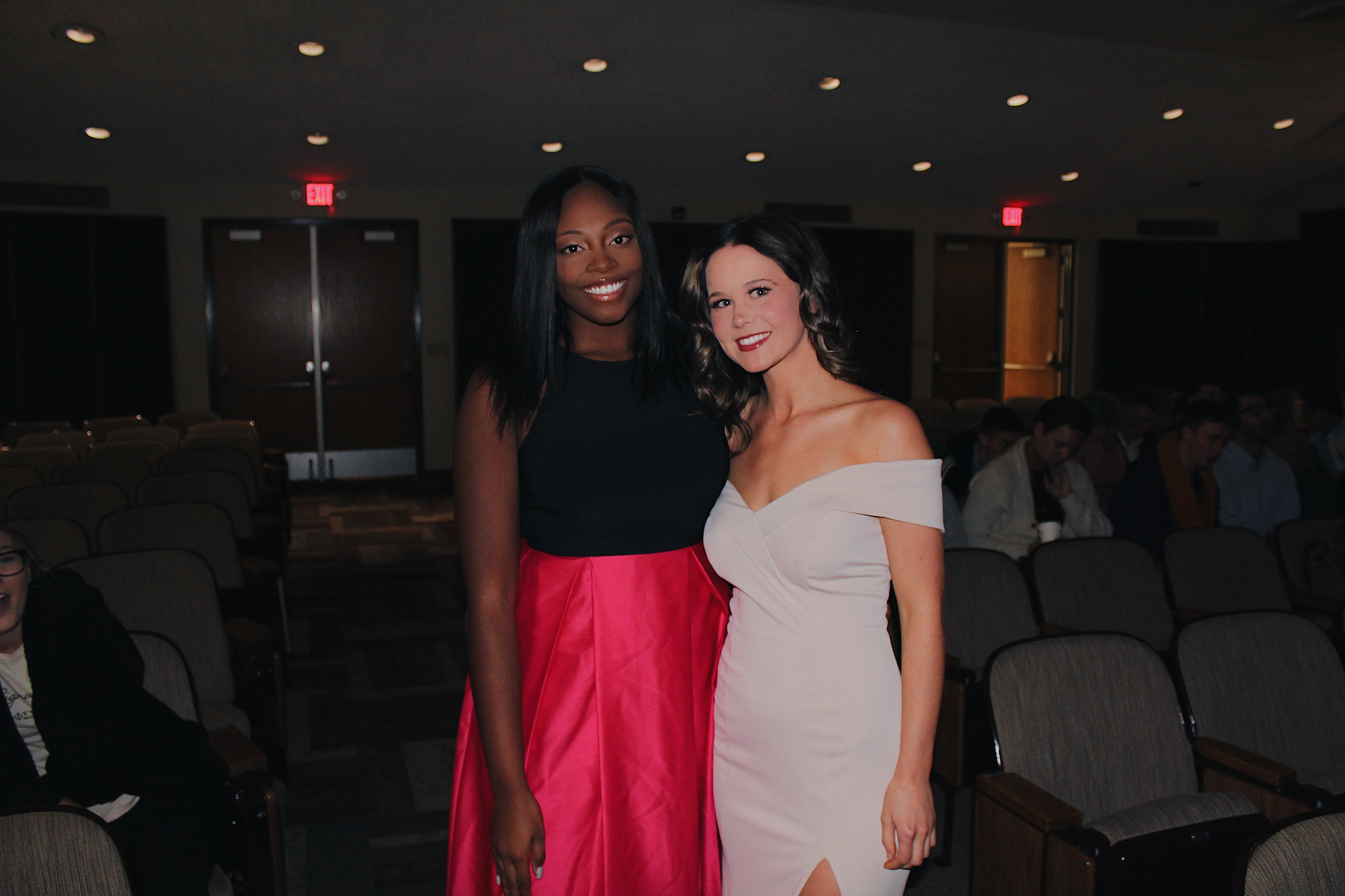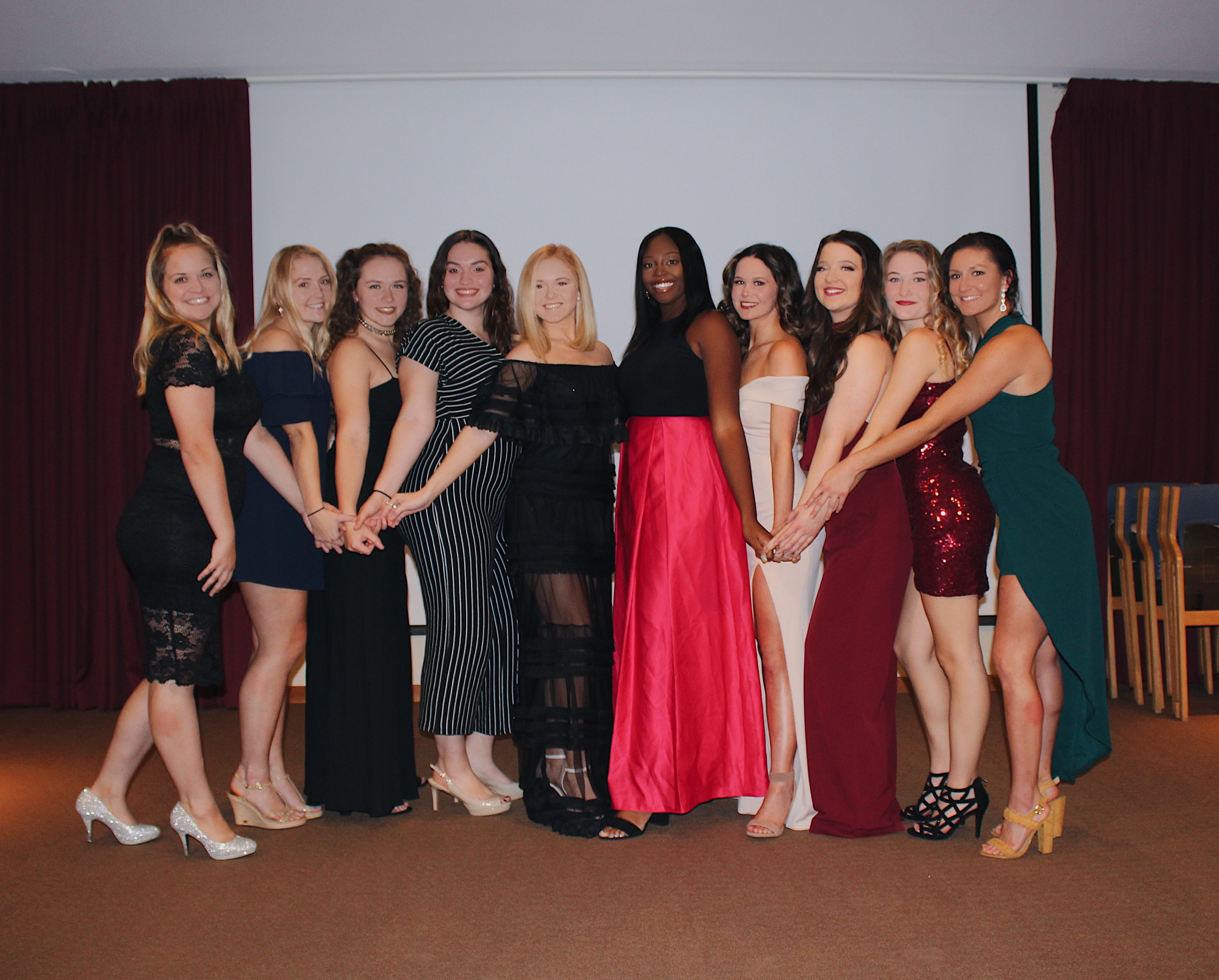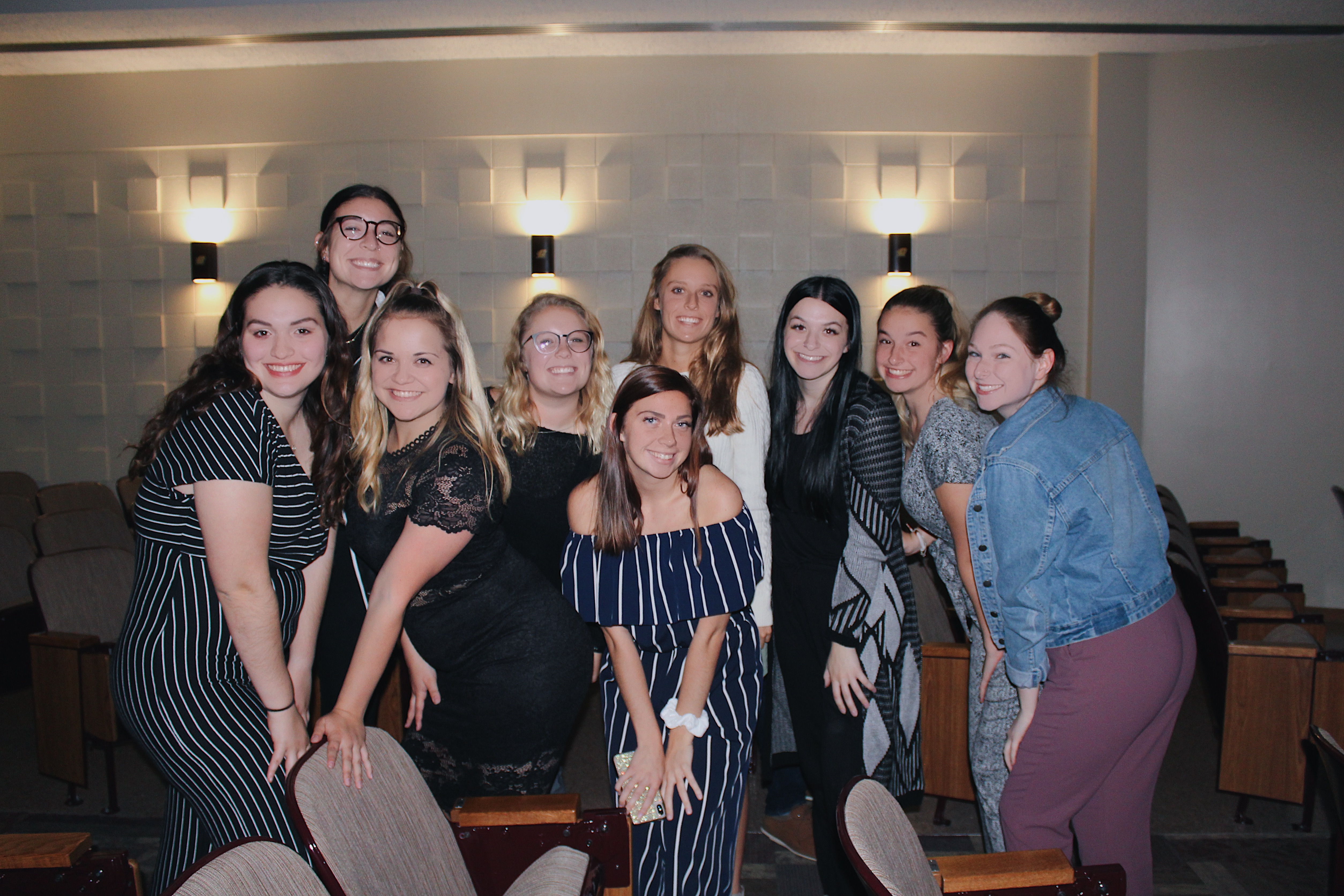 October 26, 2019 Events, Student Lifestyle The Miss Minerva Pageant Recap Story by Silas Letter Photos by Chad Novak and Silas Letter Last week, the Sigma Alpha Epsilon sorority sponsored a charity beauty pageant raising money for Hurley Children’s hospital in Flint, Mich. The pageant included participants from many of the sororities on campus, each competing with each other in three main events; a fashion show, a talent show, and then a questionnaire where they are asked different questions from the hosts. The pageant, which took place at the Bovee University Center, began with a fashion show where the participants showed off their dazzling outfits for the judges and the audience. Alyssa McNamara, Madeline Morley, Sadie Kessler, Julia Kalusniak, Lauren Lewallen, Sarah Scott, Tori Hatfield, Liz Ferden, Amanda Lewis and Jordan Hyames pose for a picture.Jordan Hyames and Lauren Lewallen pose for a picture with audience members.Alyssa McNamara, Lauren Lewallen, Sarah Scott and Sadie Kessler pose for a picture.Julia Kalusniak and Alyssa McNamara pose with audience members for a picture.Sarah Scott and Tori Hatfield pose together for a picture. Following the fashion portion of the event, the participants took turns going on stage where they performed their various gifts for the pageant’s talent show. Liz Ferden and Madeline Morley stand together on stage during the pageant’s talent show. Sadie Kessler sings for her part in the talent portion of the pageant. Lauren Lewallen sings on stage as her act for the talent portion of the pageant. Jordan Hyames sits on stage knitting a hat as her talent for the talent portion of the pageant.Amanda Lewis engaged in festive pumpkin painting as her talent for the pageant. The pageant concluded with a trivia contest where the hosts asked the participants numerous questions. Some questions were silly, others were serious. Julia Kalusniak, Alyssa McNamara, Jordan Hyames, Madeline Morley, Sadie Kessler, Lauren Lewallen, Sarah Scott, Jordan Hatfield, Amanda Lewis and Liz Ferden sitting on stage during the questions portion of the pageant.